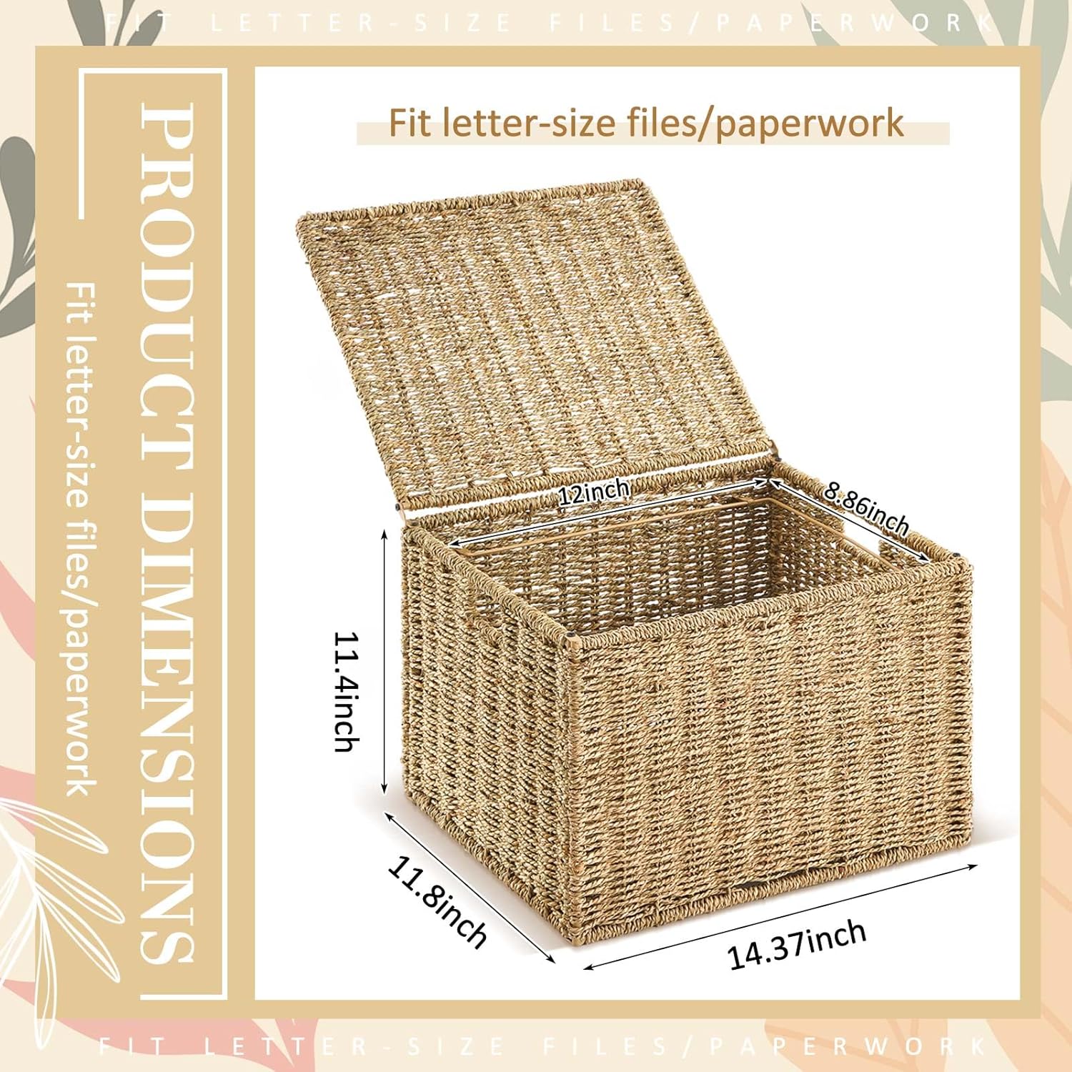 - Natural Elegance and Practicality: crafted with seagrass, this file organizer adds an element of natural charm to your space; Available in brown, this functional piece effortlessly blends in with room decoration; Not just aesthetically pleasing, it nicely caters to customer needs by providing an efficient way to organize hanging folders and paperwork, keeping your space neat and tidy (Please note: files are not included.)