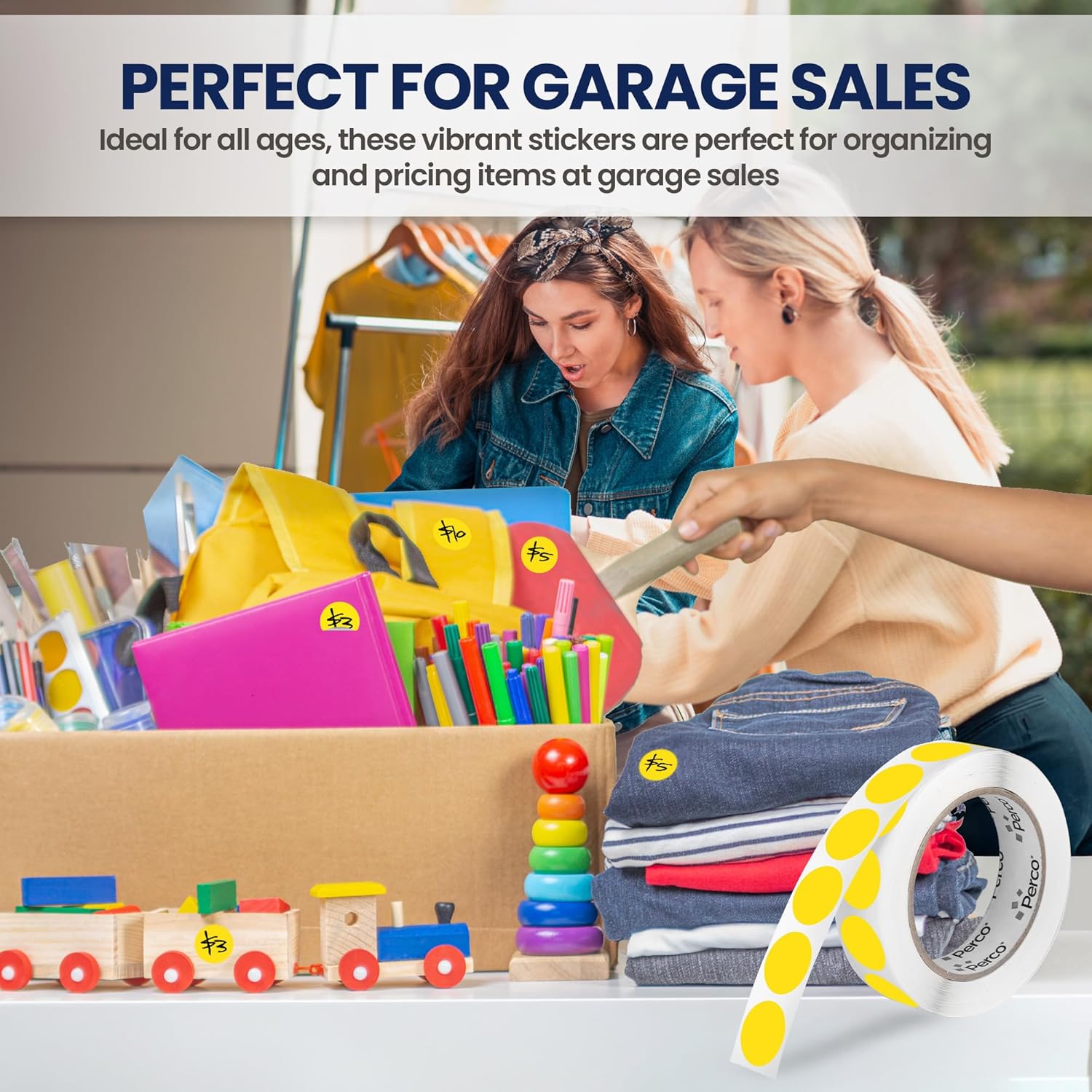 Perco Yellow 1-Inch Round Circle Dot Sticker Labels with Removable Adhesive – 1,000 Labels per Roll – Versatile, Vibrant Colors, Reliable Hold, No Residue, Perforated for Convenient Use – Made in USA