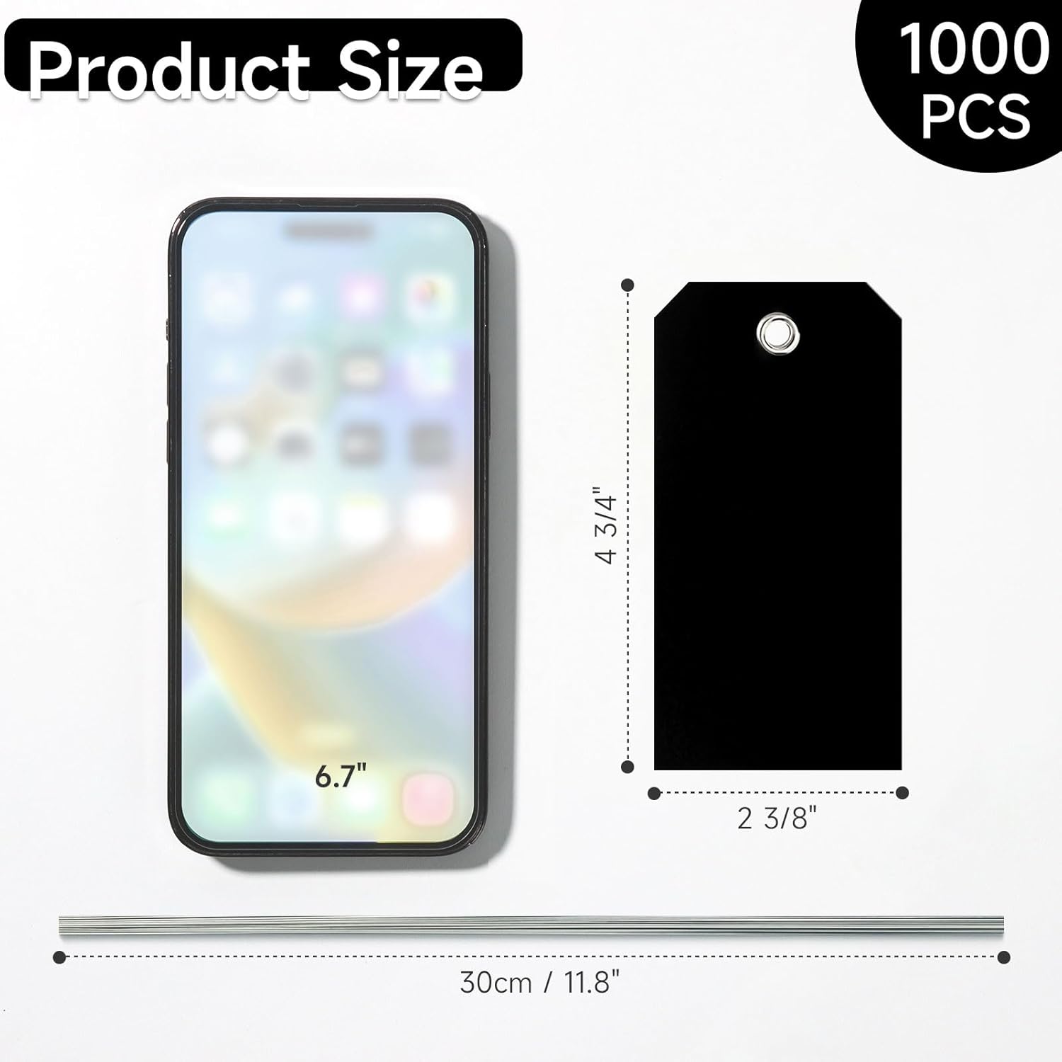 1000 Pieces Plastic Shipping Tags with Wire Labeling Tags Waterproof Hang Tags with Reinforcement Hole Writable Luggage tag Loops for Equipment Inventory Parts Garage (Black, 4 3/4" x 2 3/8")