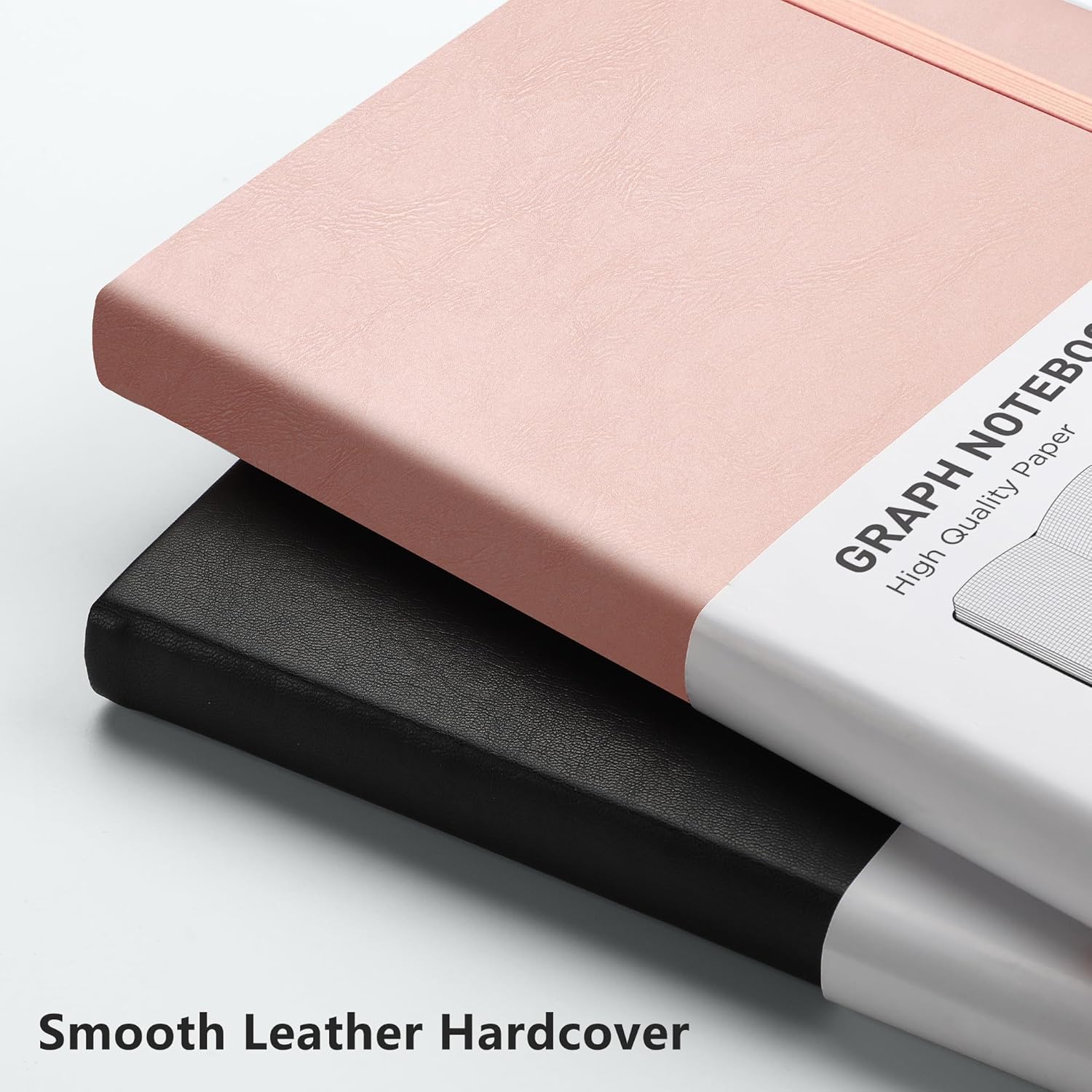 - GRAPH PAPER NOTEBOOK: RETTACY Graph Paper Notebook comes in a A5 size (5.7'' x 8.3''), 192 pages, durable and smooth leather hardcover, 100 GSM thick acid-free paper, 180° lay-flat, pen holder, elastic closure band, 2 ribbon bookmarks, inner pocket & sticky index tabs