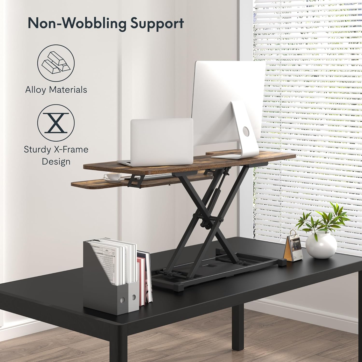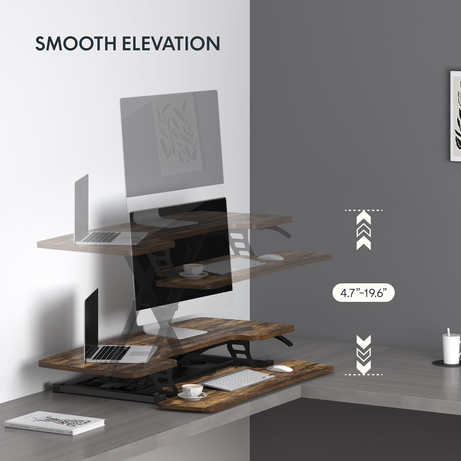 FLXISPOT 40in Standing Desk Converter, Height Adjustable Riser, Manual Lift with Gas Spring Monitor and Laptop Workstation, Rustic Color