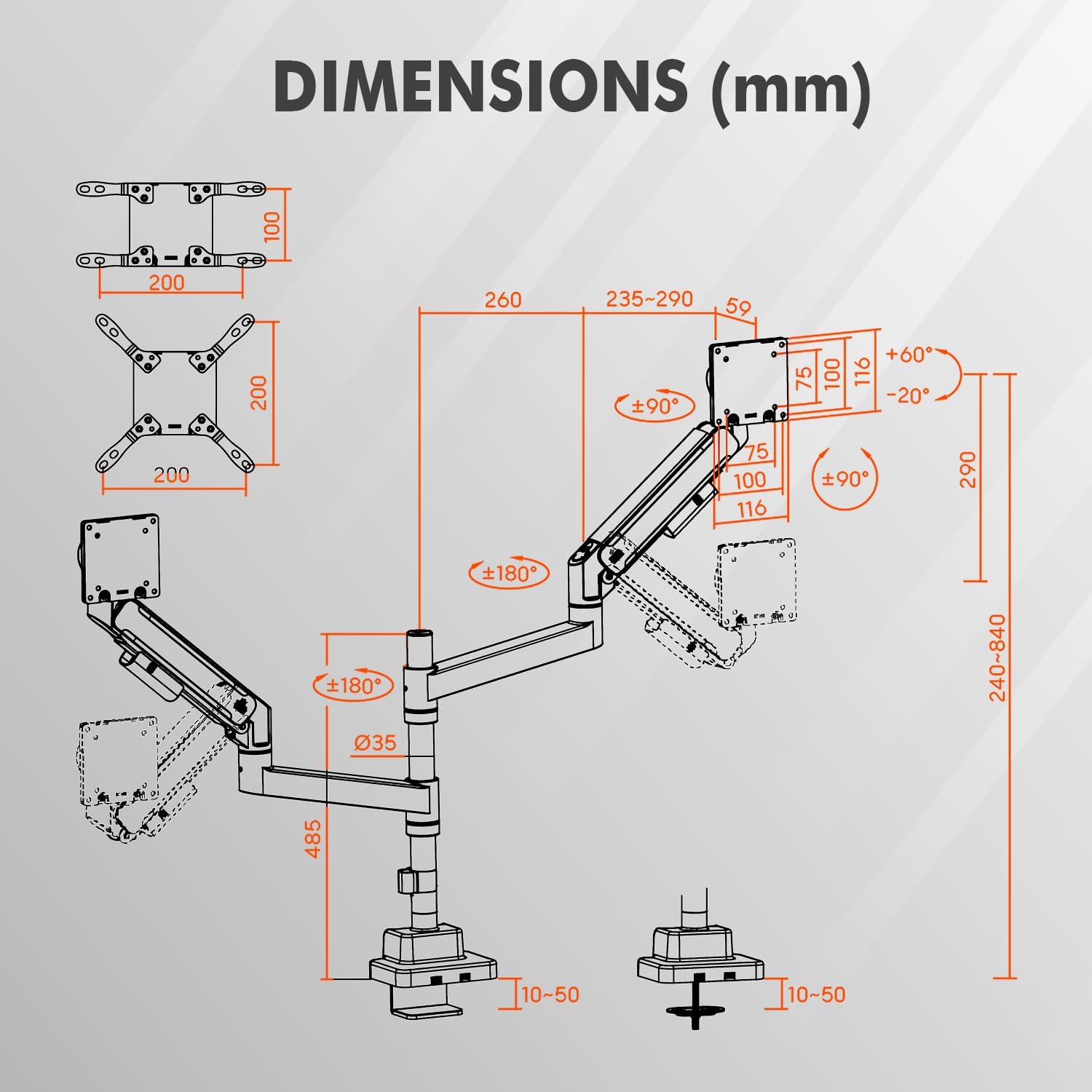 - Stylish and Space-Efficient Double Monitor Arm: Available in single and dual arm options, in both black and white. This mount is perfect for enhancing any computer setup, from gaming to professional workstations.