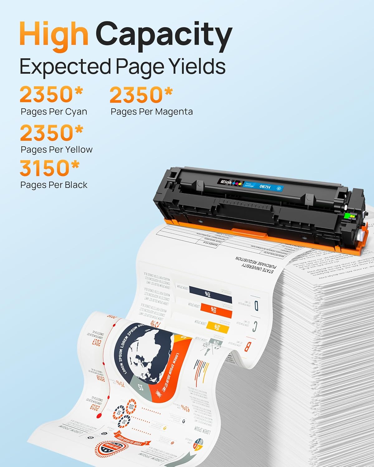- High Page Yield: 3,150 pages per 067H black toner cartridge and 2,350 pages per 067H color C/M/Y toner cartridge (at 5% coverage of A4/letter paper)