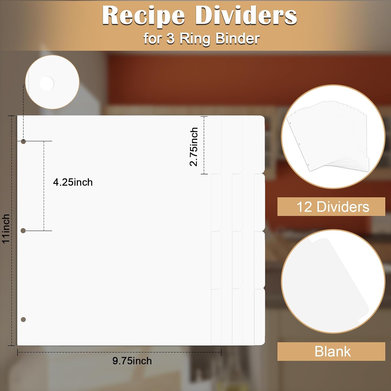 - 2. Classify as you want: Our 12 recipes dividers come with blank divider labels, so you can create the categories you want. You can easily divide recipes into several categories or classify them according to their uses. All recipes of the same category can be gathered in one place and separated.