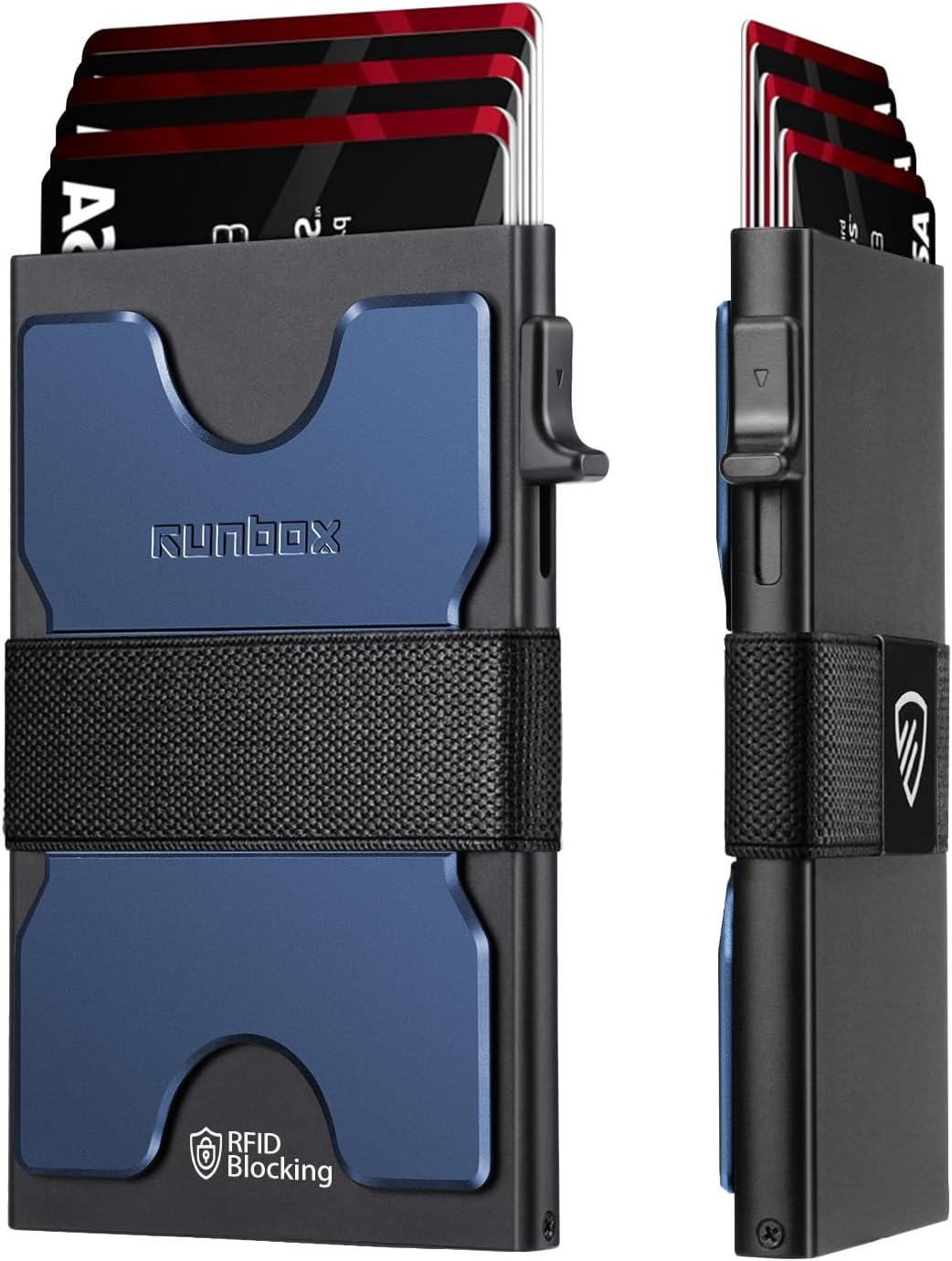 - Quick Access & Expandable Capacity (Holds 1-12 Cards): Experience effortless card access with our patented pop-up button mechanism – press to instantly eject cards. The main aluminum card holder compartment holds 4-6 cards(depending on embossed designs), while the expandable metal backplate adds 6-8 extra slots. *Total capacity varies with card thickness