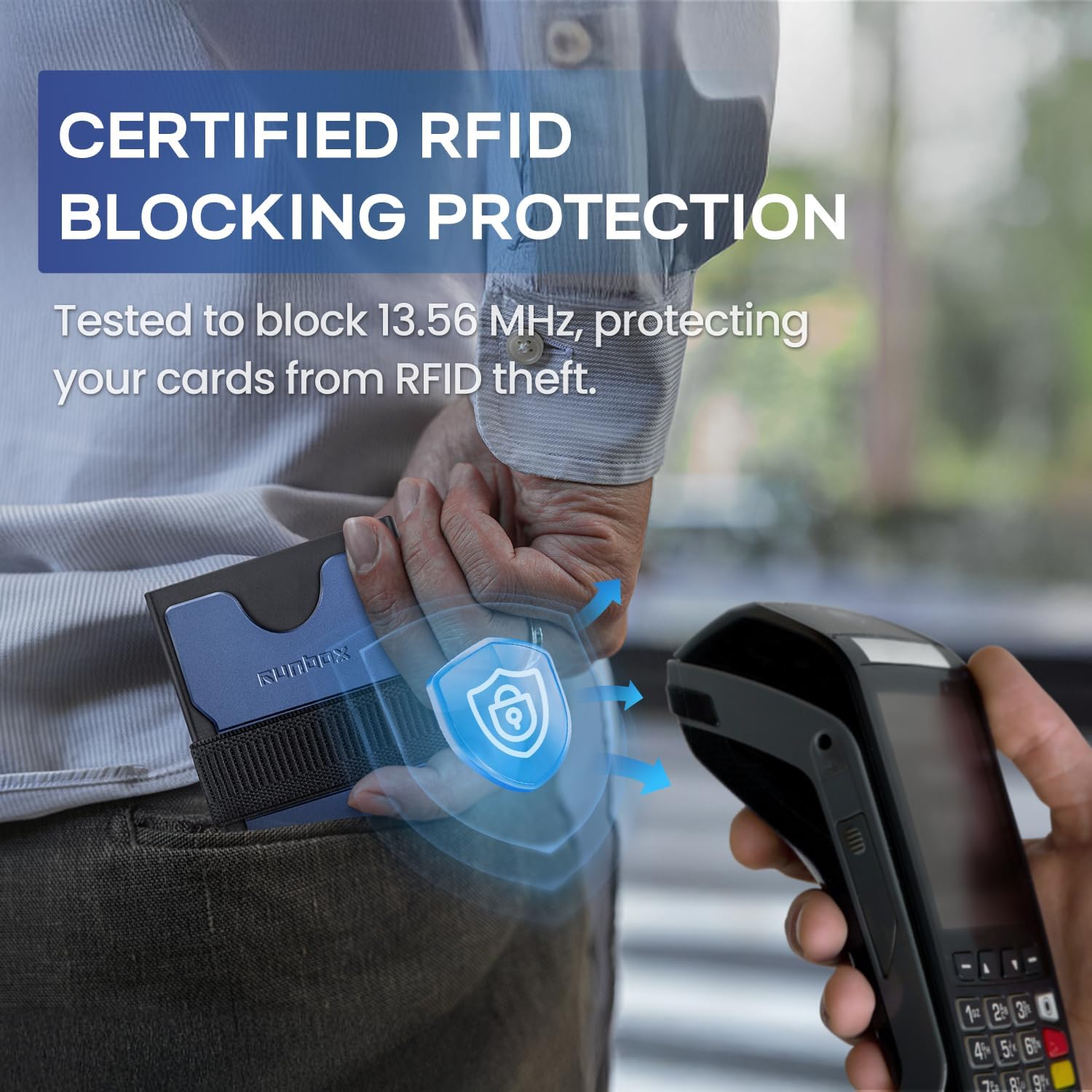 - Military-Grade RFID/NFC Protection: Built with solid aluminum shielding, this smart wallet blocks 13.56MHz signals to prevent digital theft. Safeguard credit cards and IDs from skimming devices – your data stays secure