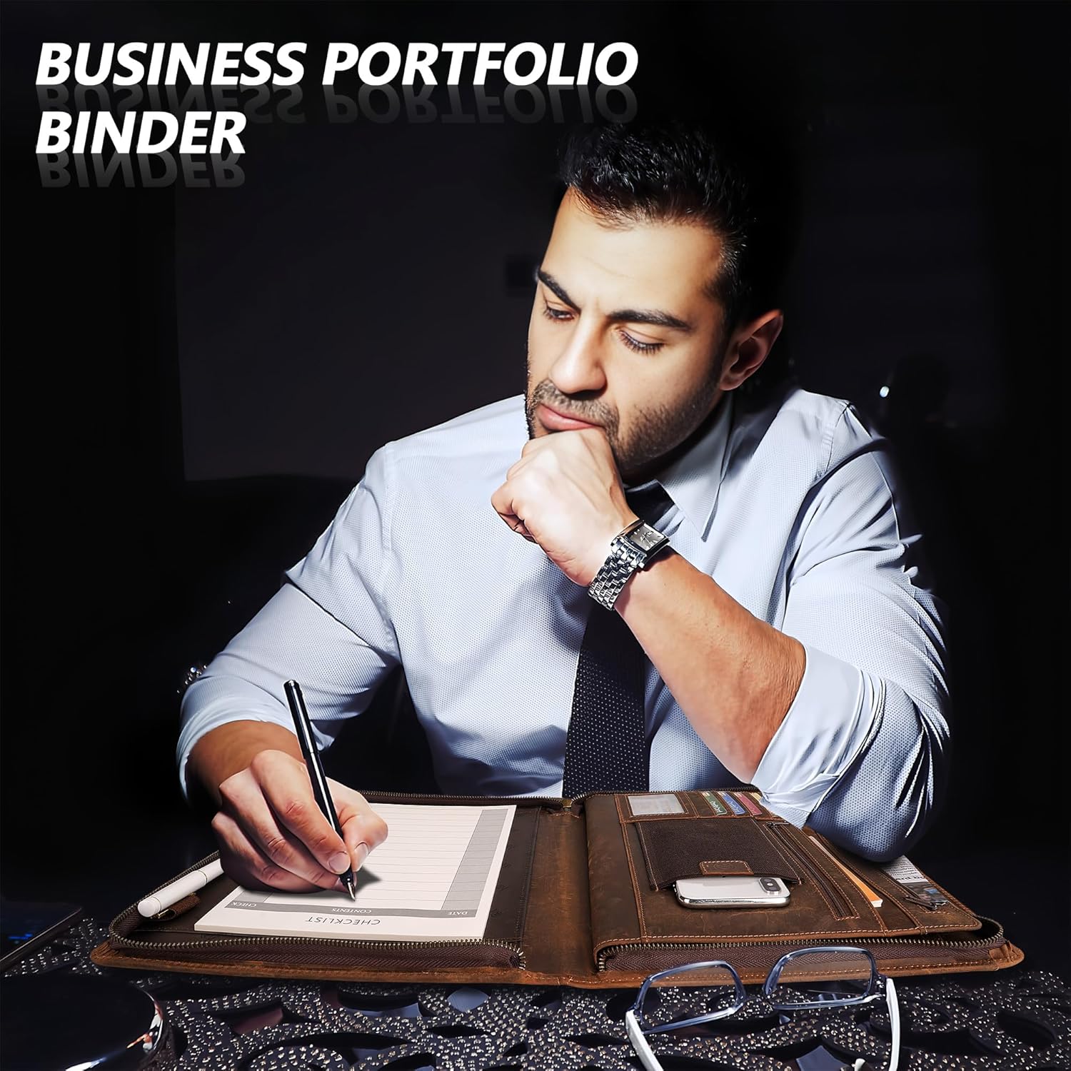 - Genuine Full Grain Leather Portfolio Padfolio: Handcrafted from premium genuine full-grain leather, our executive portfolio exudes luxury and professional elegance. The rich texture develops a beautiful patina with age, enhancing its sophisticated appearance and making each piece uniquely yours. Perfect for executives, lawyers, and business professionals.