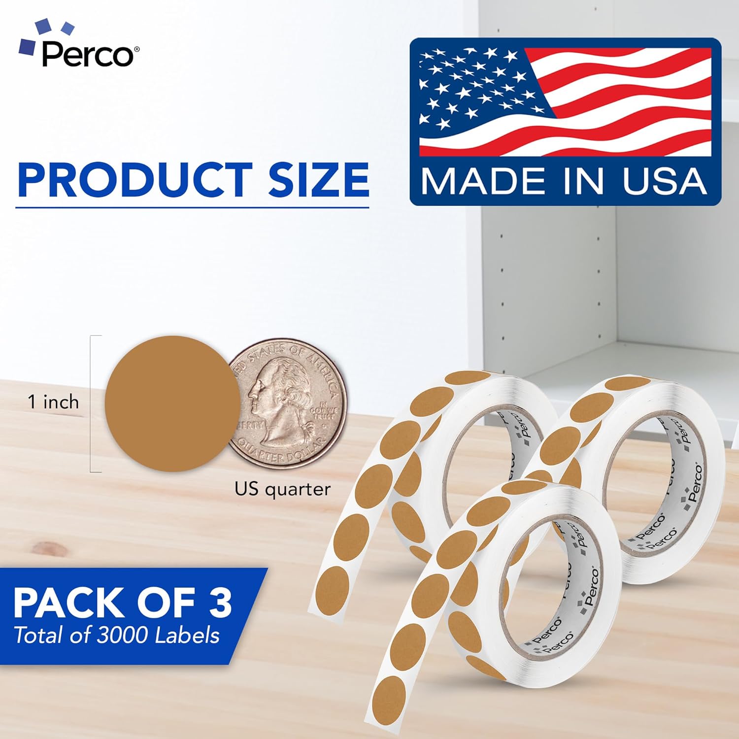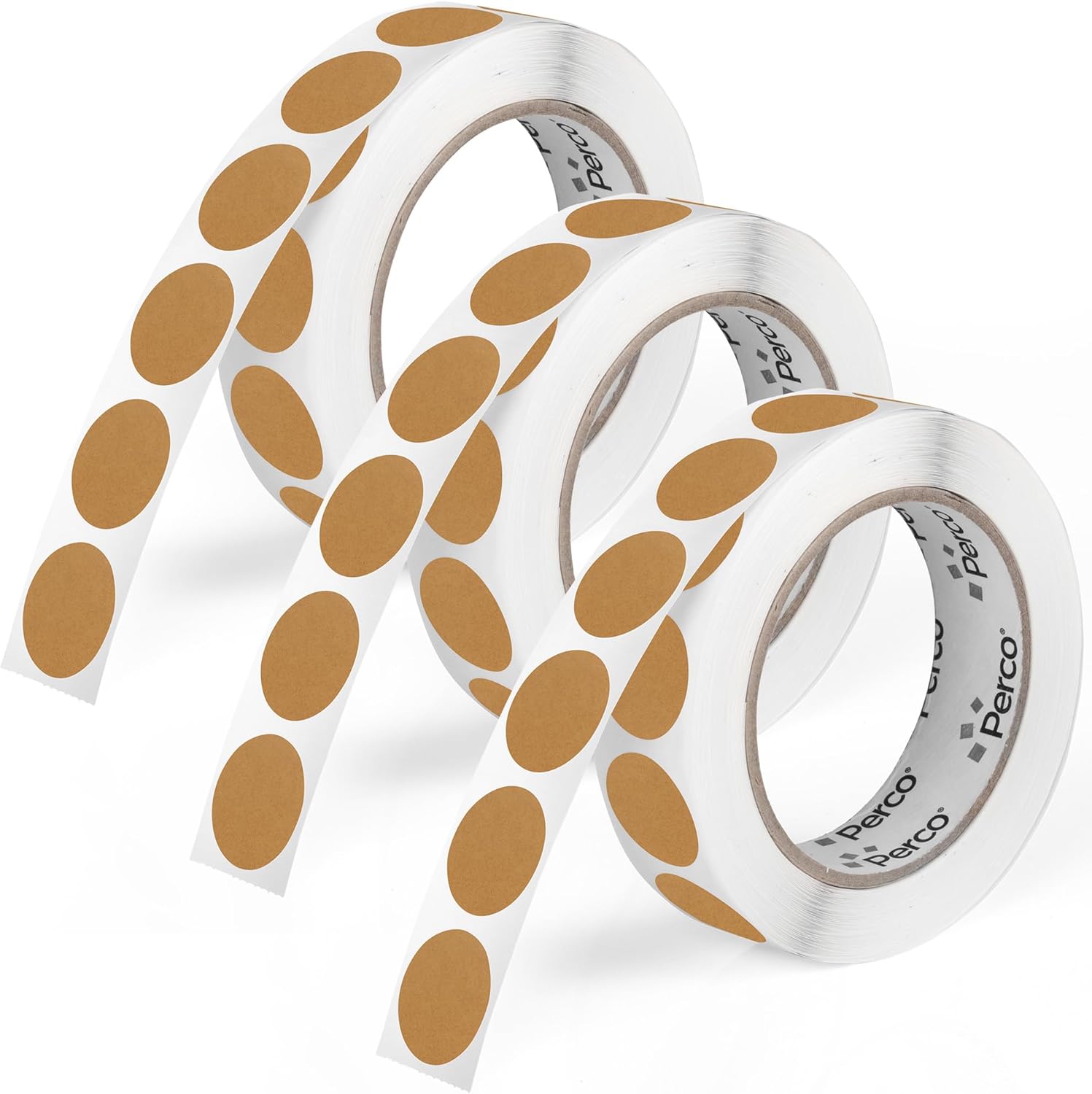 Perco Kraft Brown 1-Inch Round Circle Dot Sticker Labels - Multi-Roll Pack (3 Rolls, 1,000 Labels Each) - Permanent Adhesive, Natural, Cardboard-Like Surface - Perforated for Easy Use - Made in USA