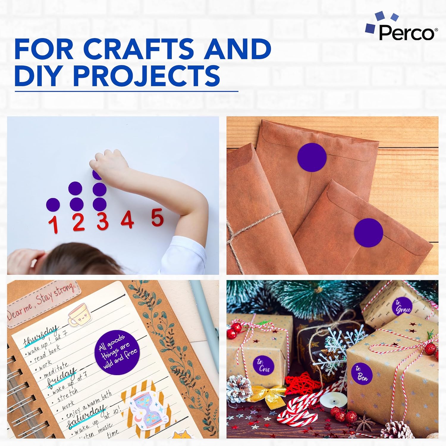 Perco Purple 2-Inch Round Circle Dot Sticker Labels - Multi-Roll Pack (3 Rolls, 500 Labels Each) - Permanent Adhesive, Vibrant Colors, Strong Hold - Perforated for Easy Use - Made in USA