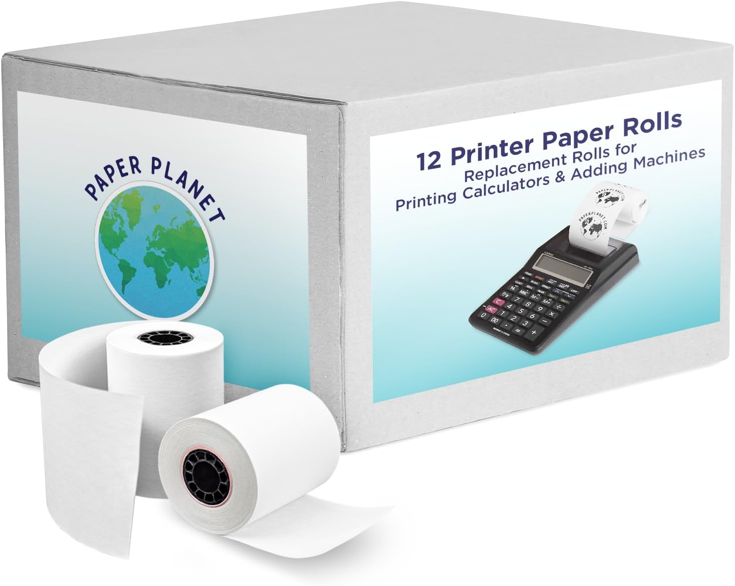 Adding Machine Bond Paper Rolls for Finance and Tax Professionals by Paper Planet | Printing Calculator Rolls Compatible with Select Canon, Casio, Sharp, and Victor Adding Machines | 12 Rolls