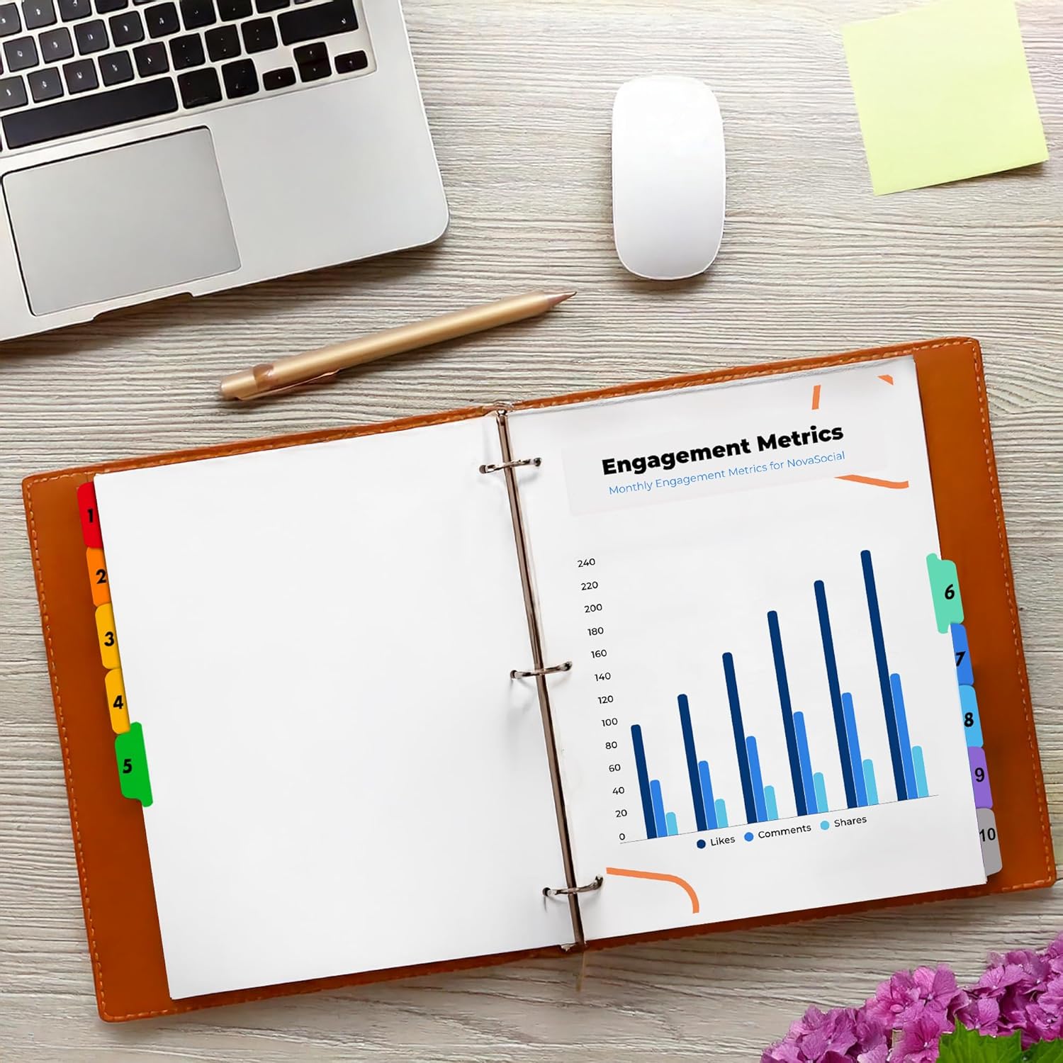 - Numerical index tabs 1–10 – Each set includes 10 clear, legible tabs numbered 1 through 10 for fast reference and section organization.
