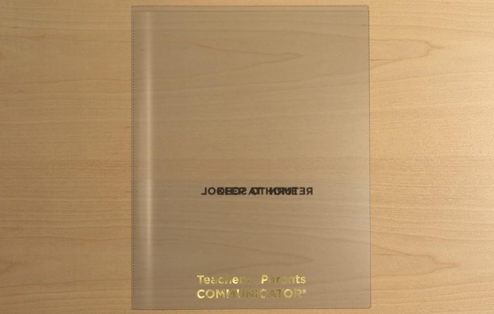- Folders are preprinted with: Bottom Front - 'Teachers...Parents COMMUNICATOR'; Inside Left - 'Return to School'; Inside Right - 'Keep at Home'