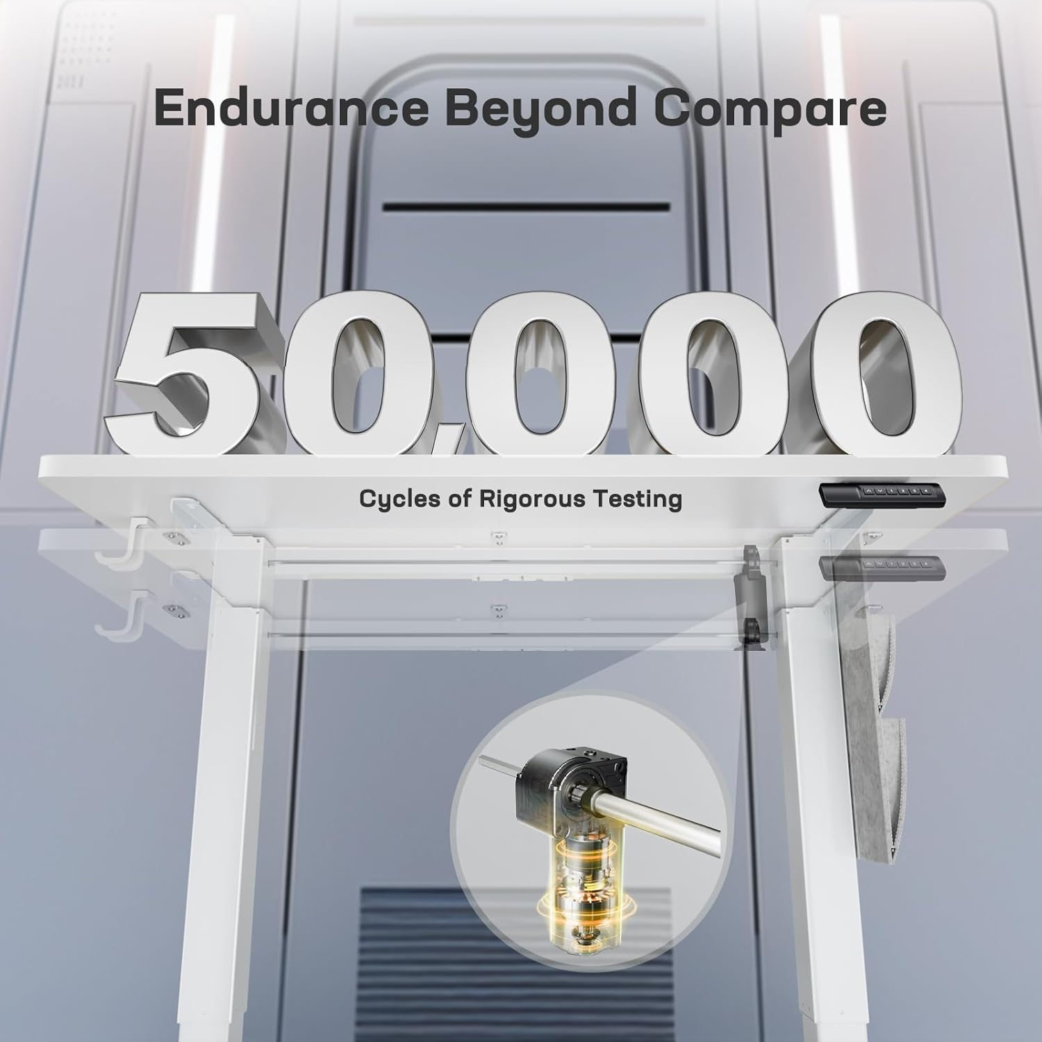 - Energy-Efficient Motor: Equipped with a quiet motor operating below 50 dB, this home office desk provides smooth adjustments at a rate of 2 inches per second, even under heavy loads. The motor’s energy-efficient design reduces power consumption, supporting an eco-friendly workspace. Paired with a sturdy steel frame, the desk remains stable during height adjustments, creating a reliable foundation for a dynamic work environment.