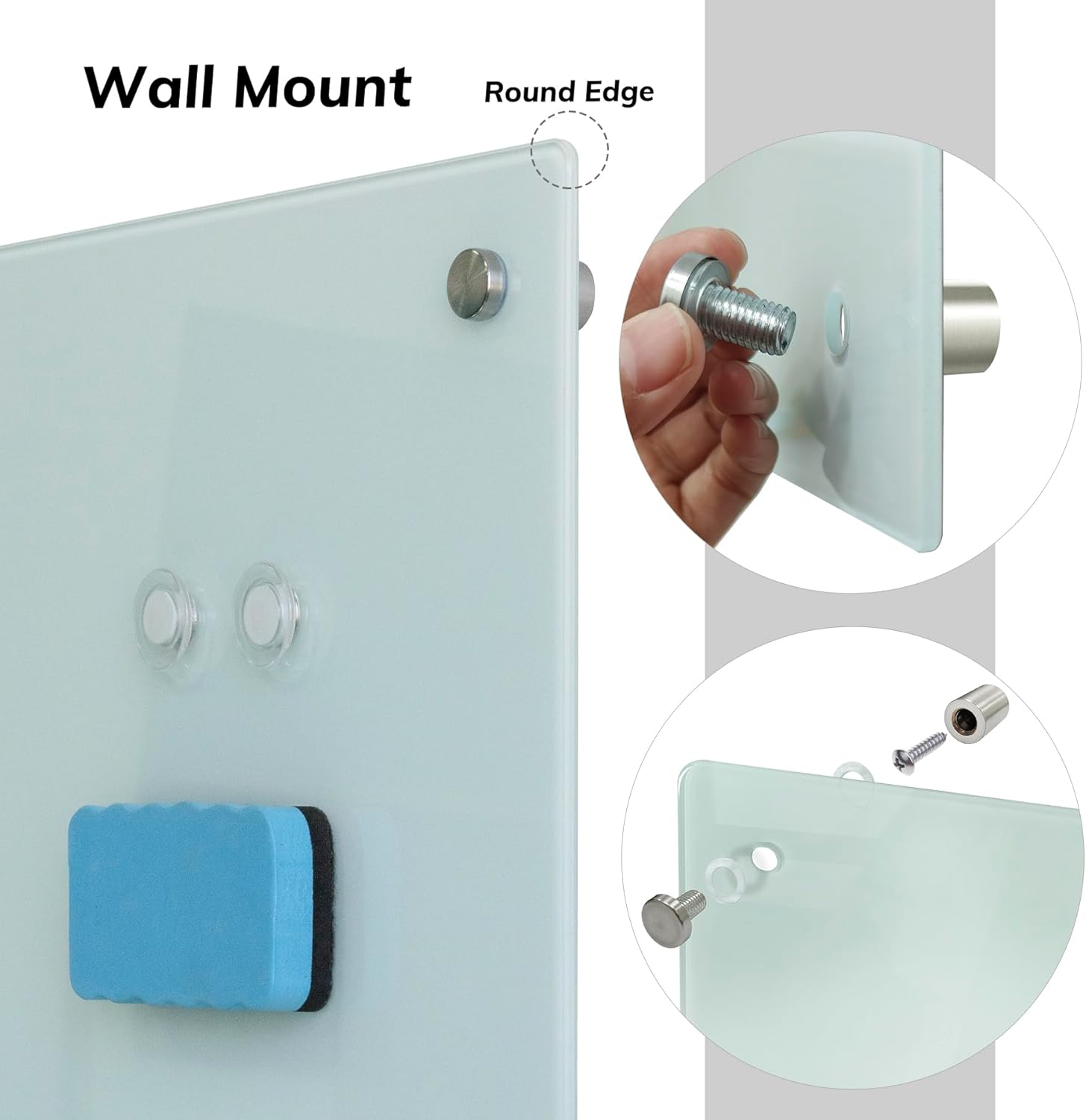 - Sleek, Functional Design Modern frameless aesthetic with a sturdy aluminum marker tray included—perfect for keeping markers and erasers organized within easy reach.