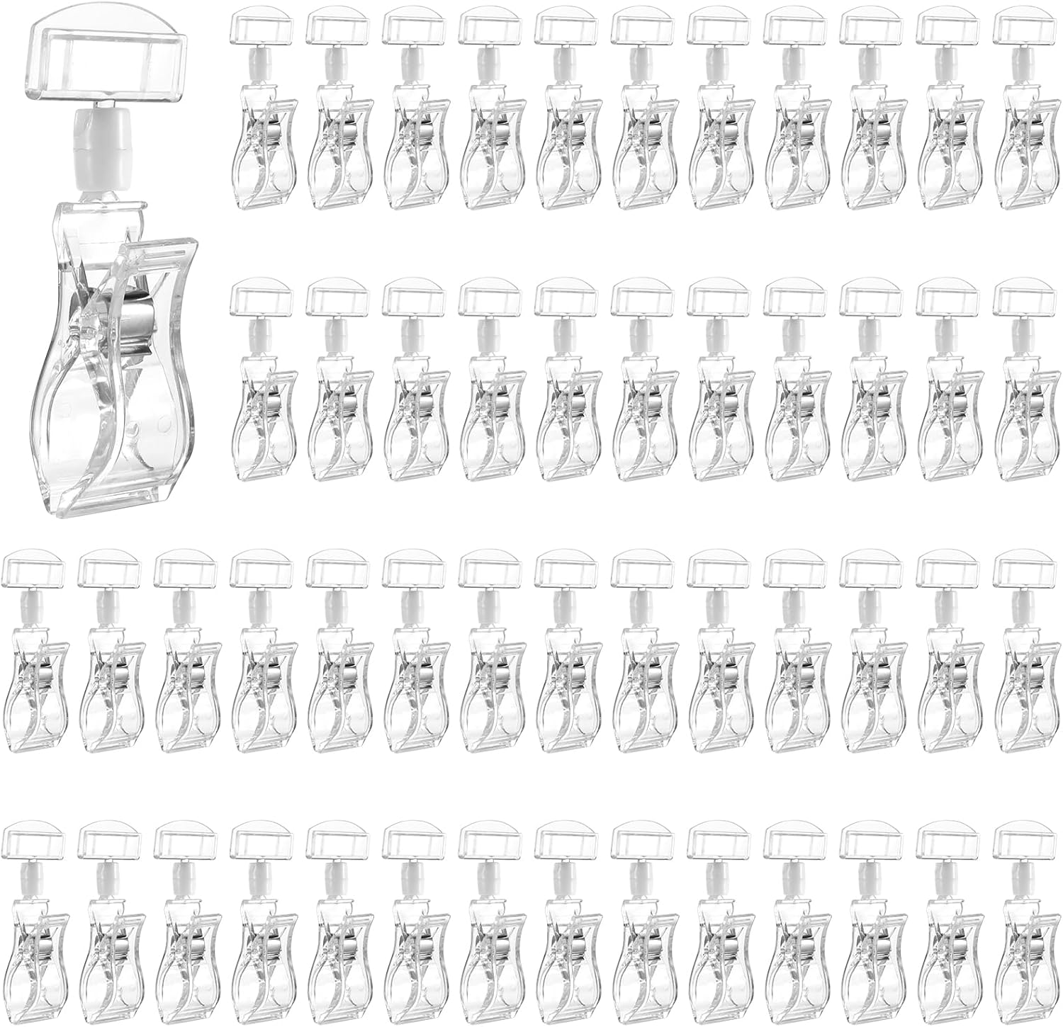 50 Pcs Plastic Sign Holder Clip Clear Food Signs Clip Swivel Price Signs Clip Rotatable Price Rack Shelf Clips for Merchandise Sign Clip Double Display Clips for Retail Cards