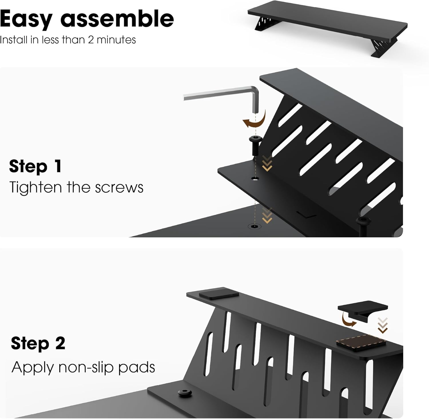 - 【Super Easy to Assemble】Our computer monitor riser comes with pre-drilled holes, all you need to do is screw the 4 brackets into the panel. You can install your dual monitor riser within 2 minutes!