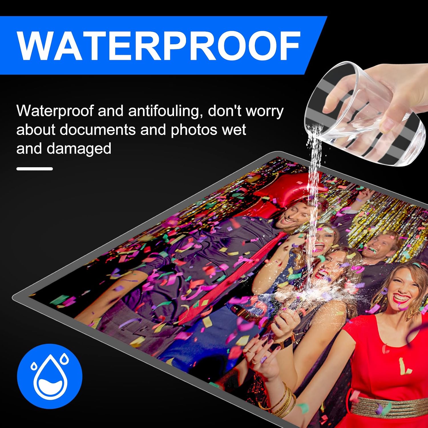- PREMIUM MATERIAL: Crystal clear, glossy sheen, sturdy and Premium material. Laceration resistant, double coating, anti-stain, practical and waterproof, protect your document from scratching