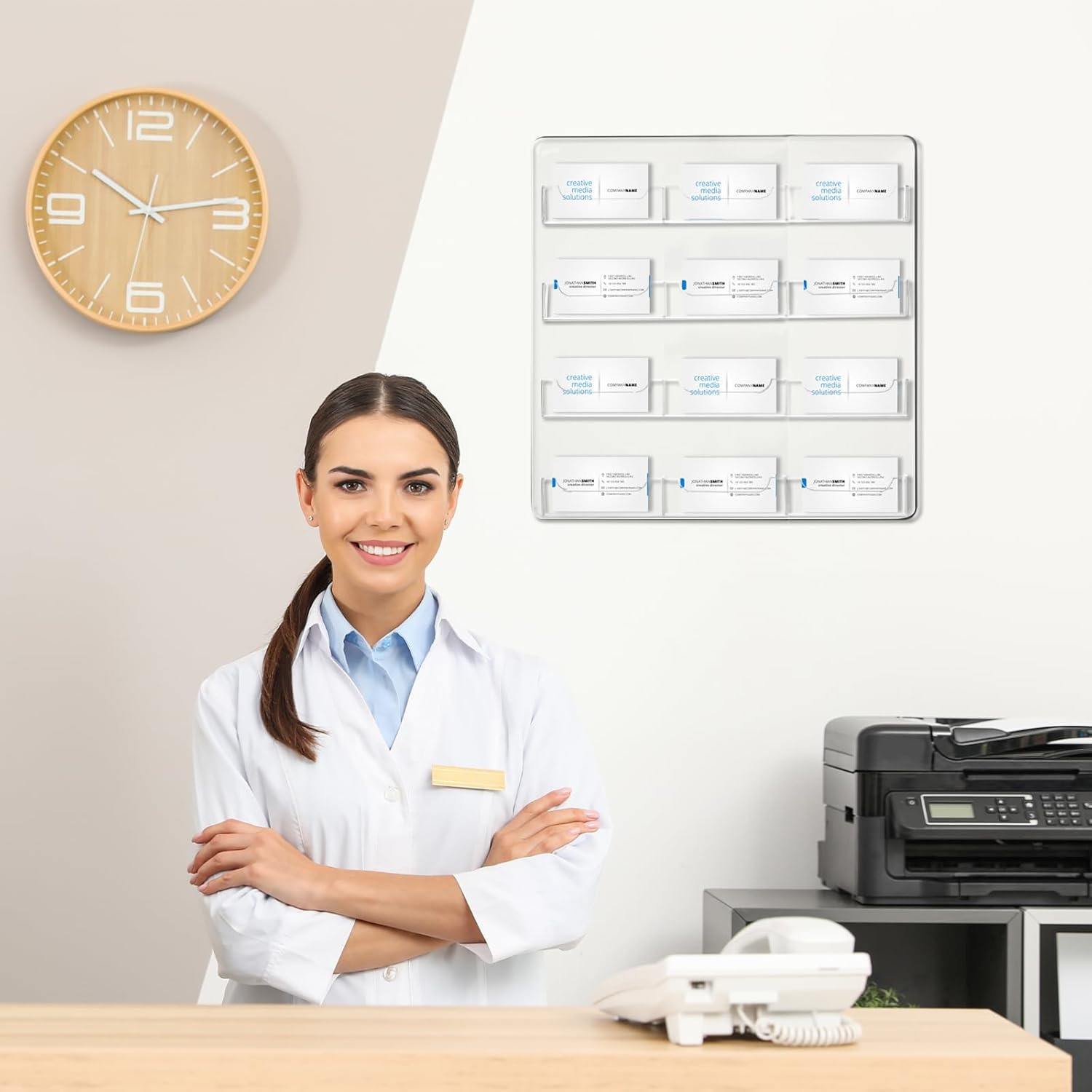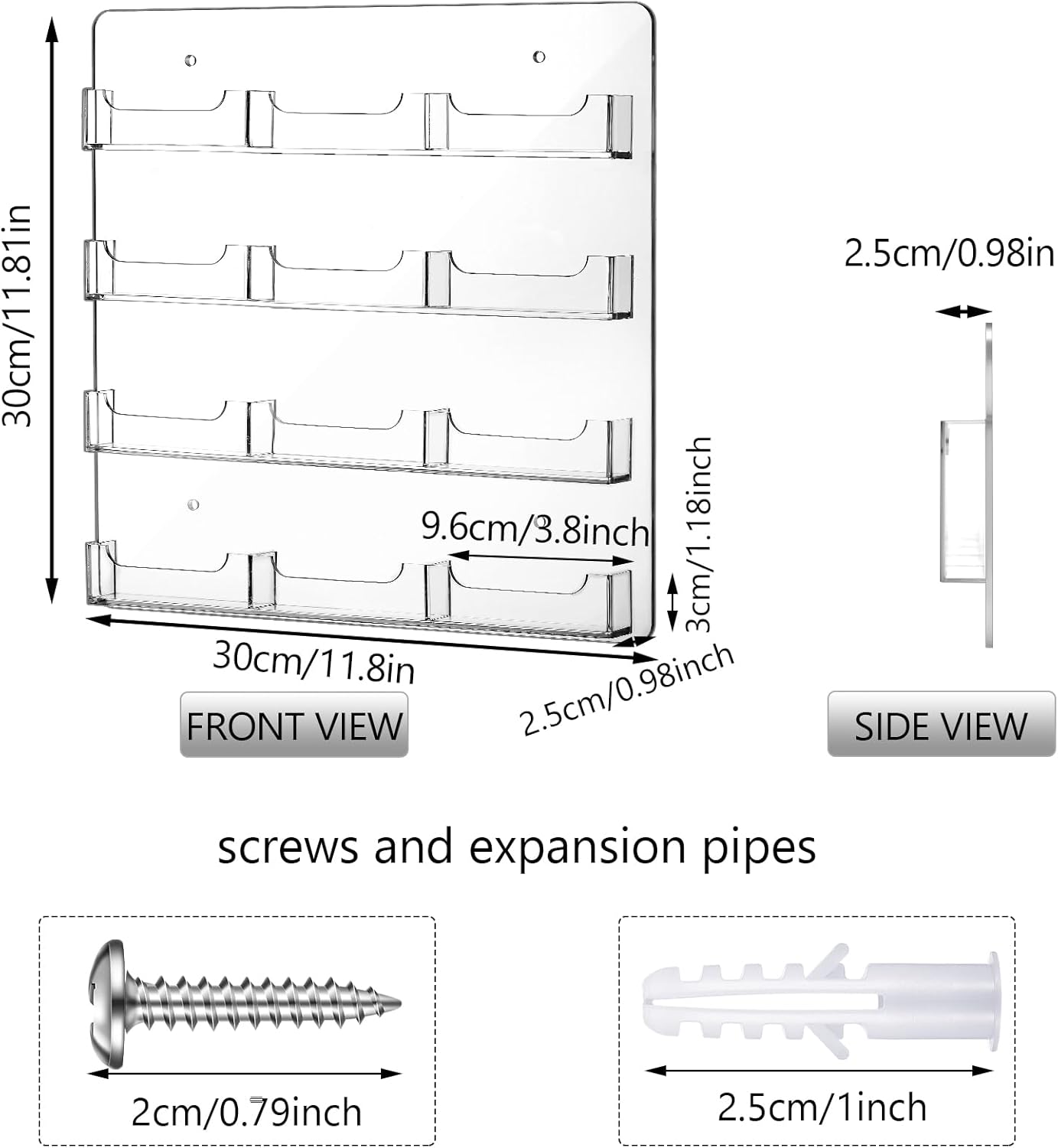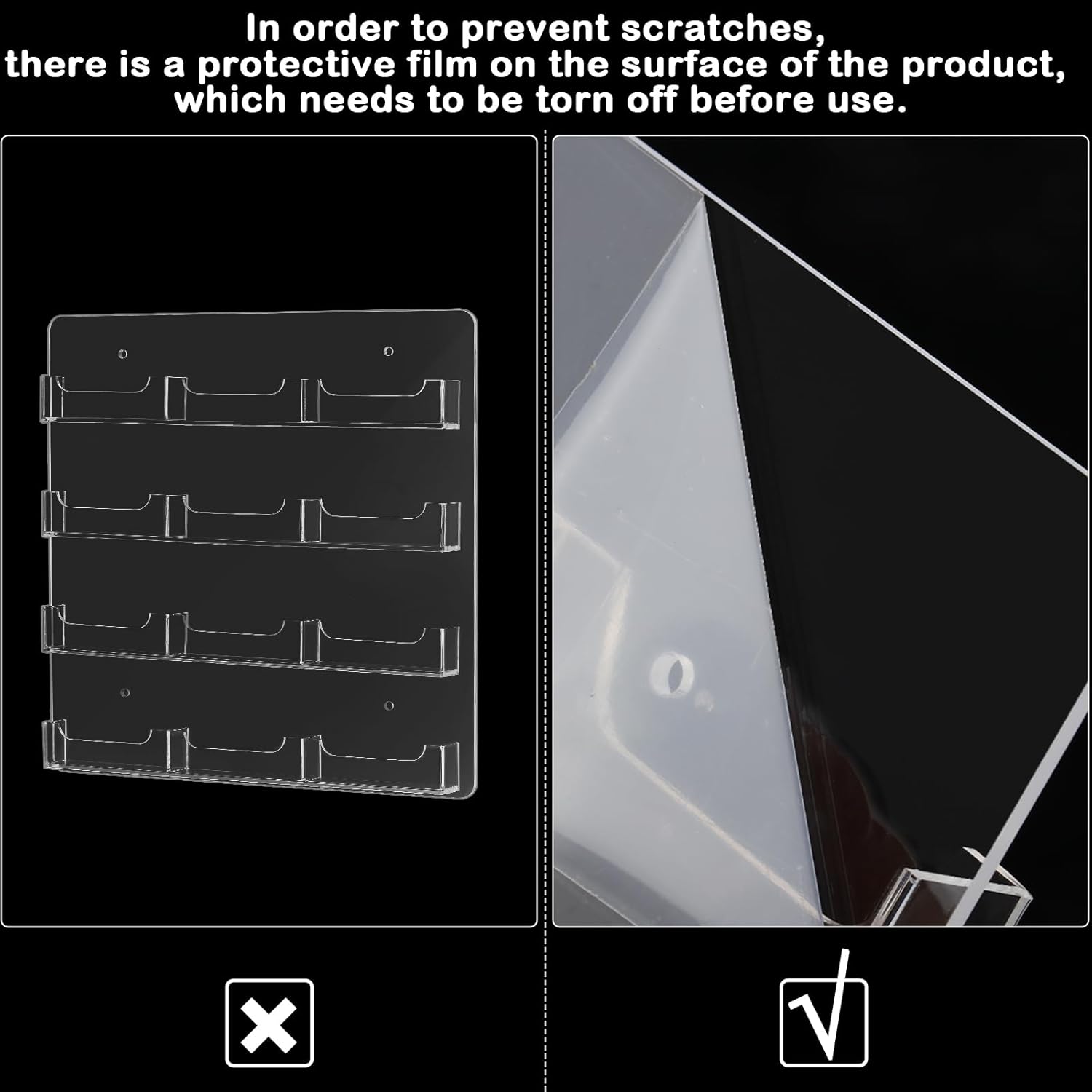 Hillban Acrylic Business Card Holder Wall Mount Clear Sticker Display Rack Multiple Card Holders Clear Acrylic Organizing Sticker Display Stand Pre Drilled(12 Pockets)