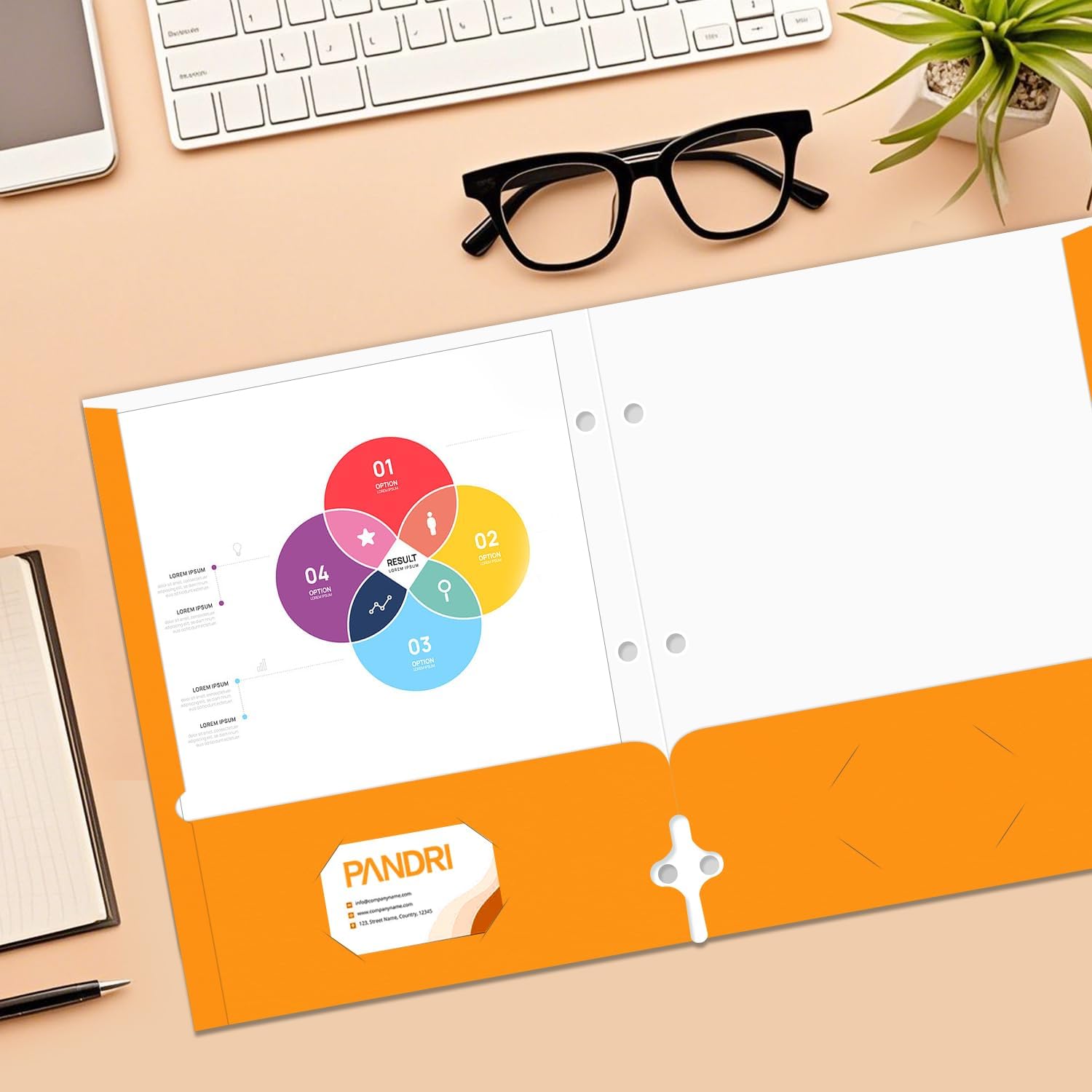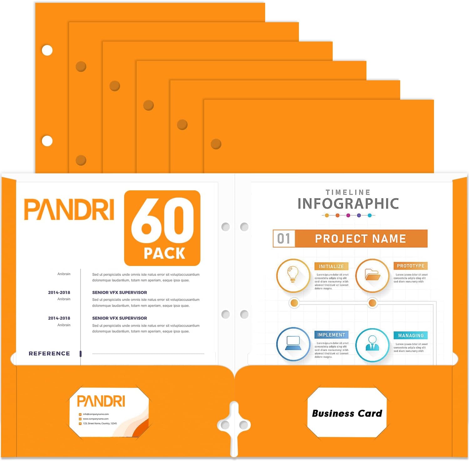 Two Pocket Portfolio Folders, PANDRI 60 Pack 3 Hole Punched 2 Pocket Folders for 3 Ring Binder, Letter Size Paper File Folder for School Office Home Business, Orange
