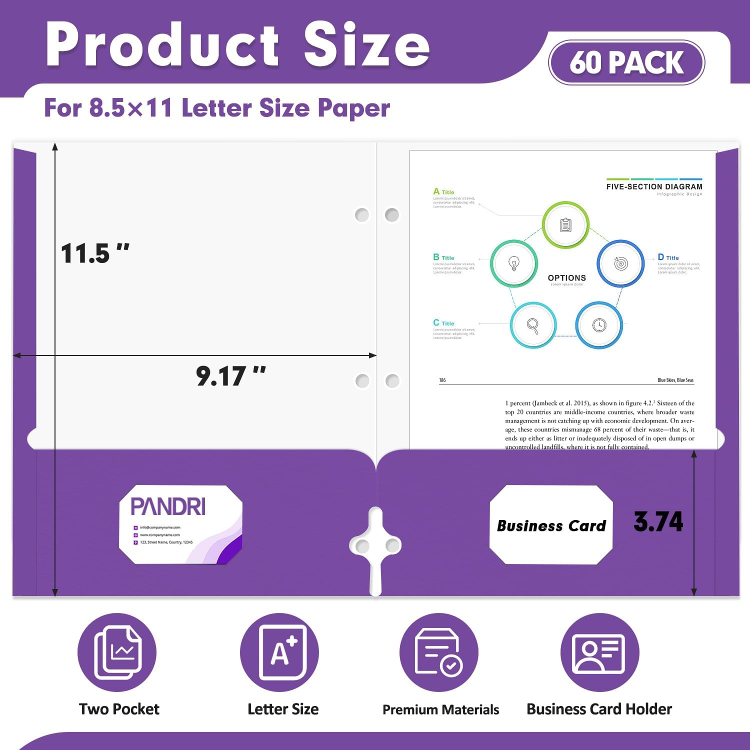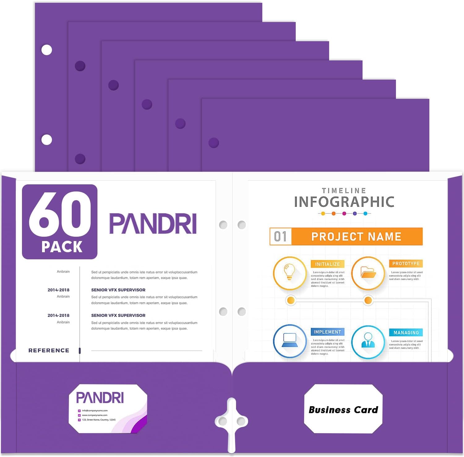 Two Pocket Portfolio Folders, PANDRI 60 Pack 3 Hole Punched 2 Pocket Folders for 3 Ring Binder, Letter Size Paper File Folder for School Office Home Business, Purple