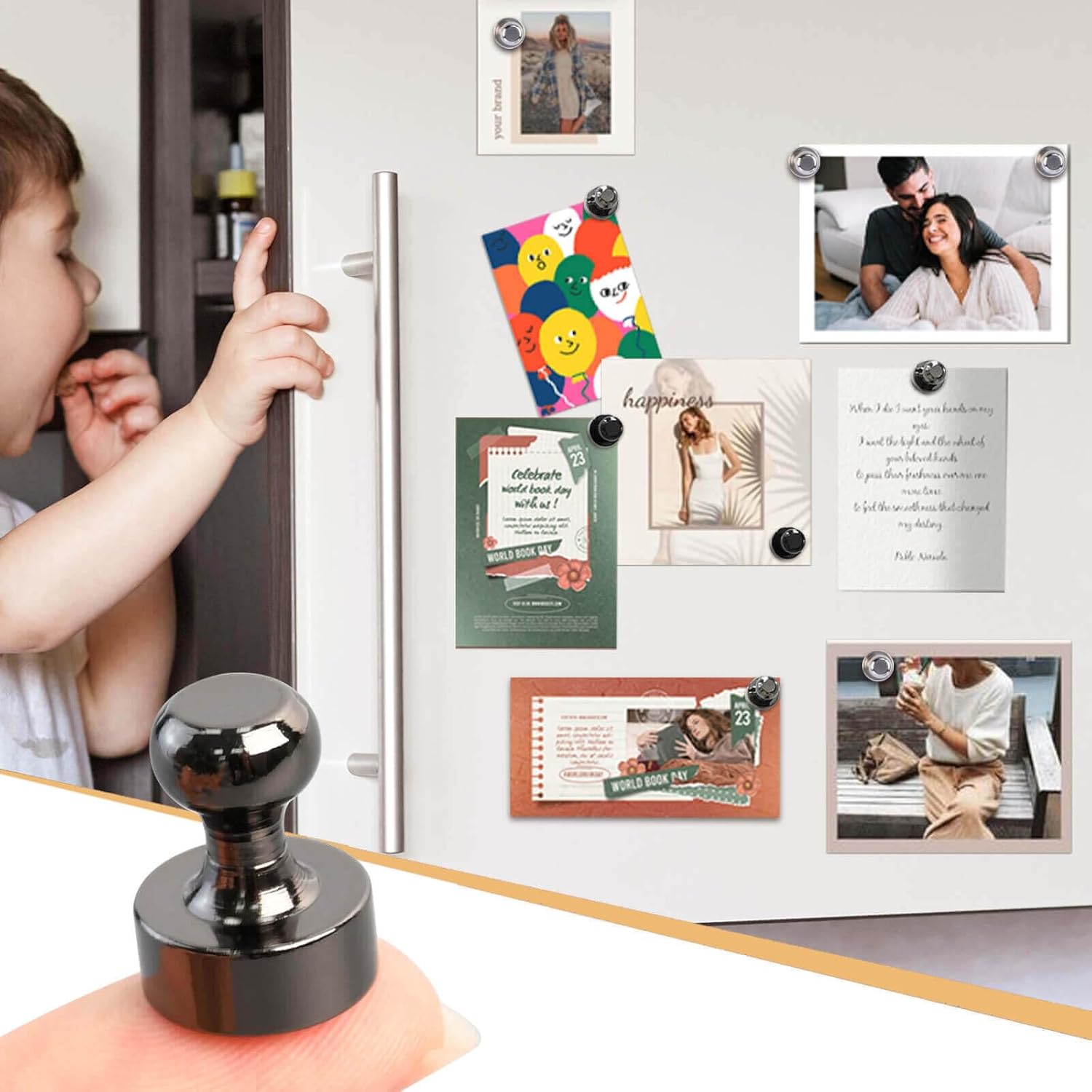 - 【Small But Strong】Our small rare earth magnets have greater suction. It can hold up to 15+ sheets of A4 printer paper at once with cute push pin magnets. Size: 0.47"D x 0.63"H, pack of 25