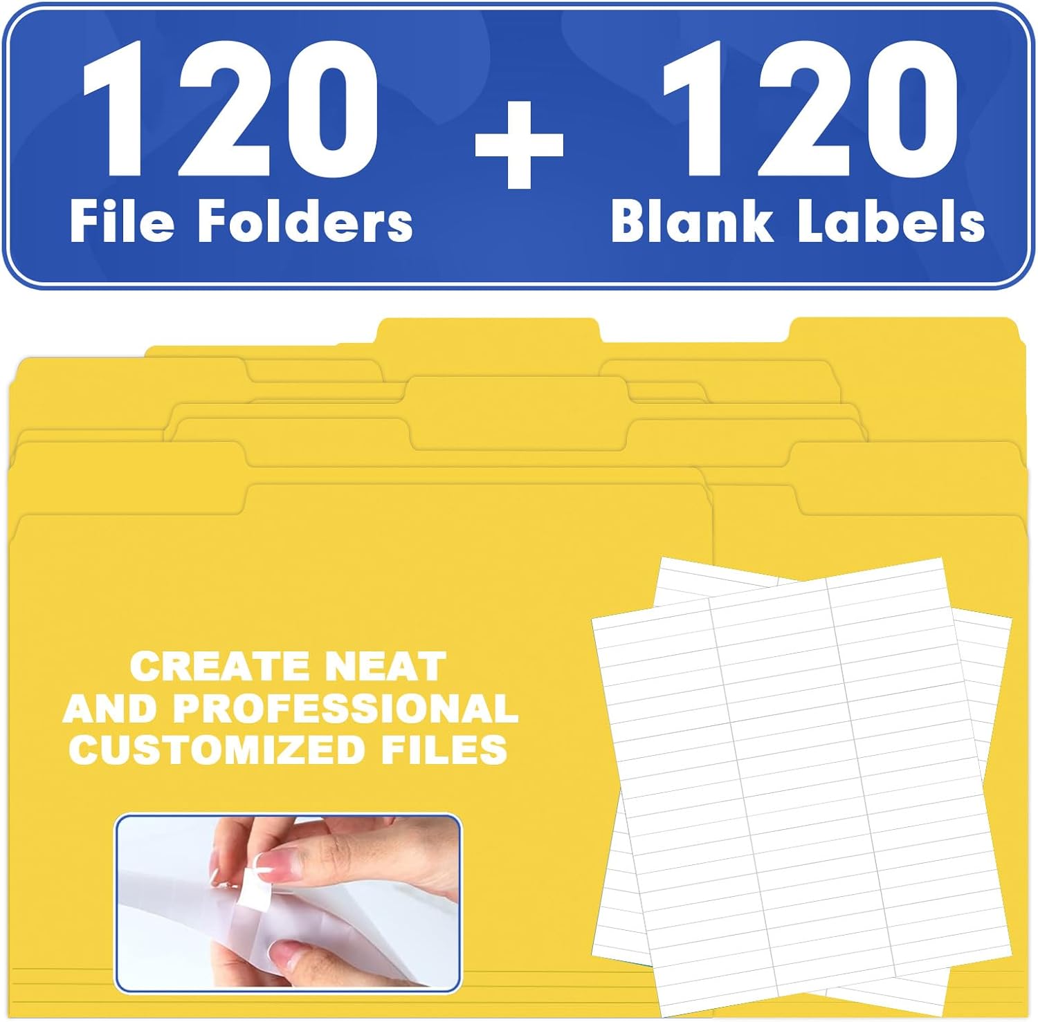 - FILE FOLDERS SET: Contains 120 white labels and 120 folders. Organize different types of documents for classification and storage.