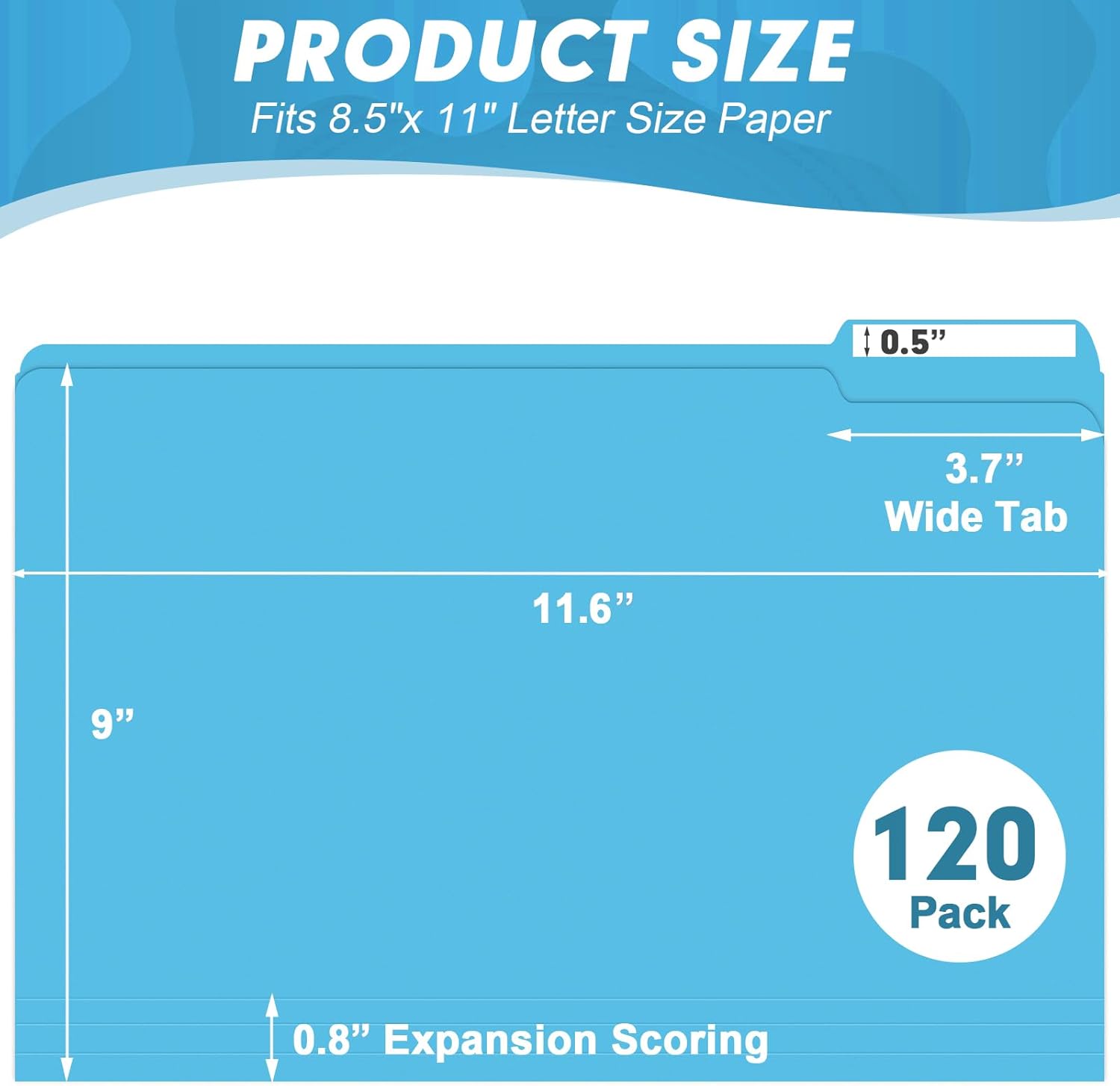 File Folder, HERKKA 120 Pack 1/3 Cut Tab File Folders, Letter Size, Assorted 6 Colors, Colored File Folders Great for Organizing and Filing