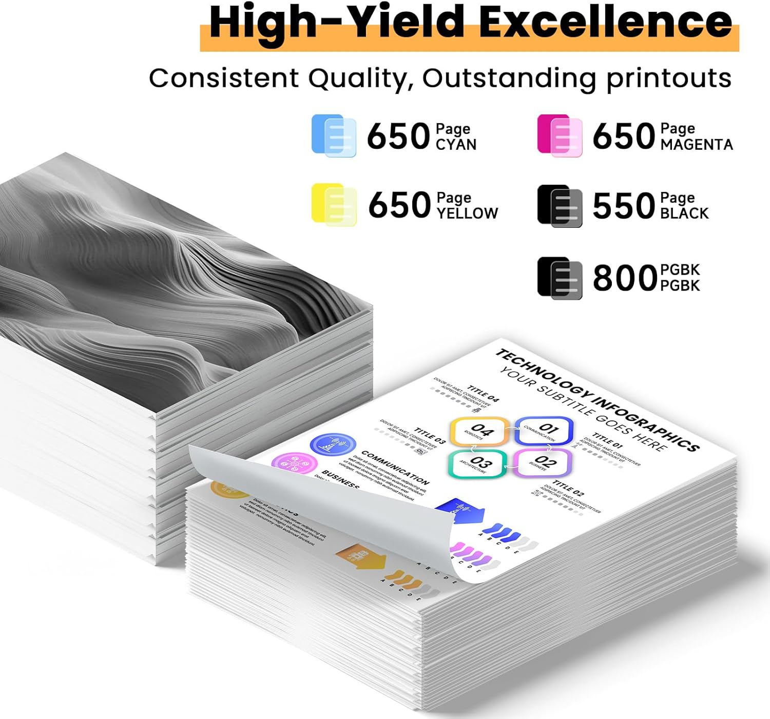 - High Page Yield: Delivers up to 800 pages for Photo Black, 550 pages for Black, and 650 pages for Color ink cartridges (based on 5% coverage on A4/Letter paper). Ideal for cost-effective, long-lasting printing