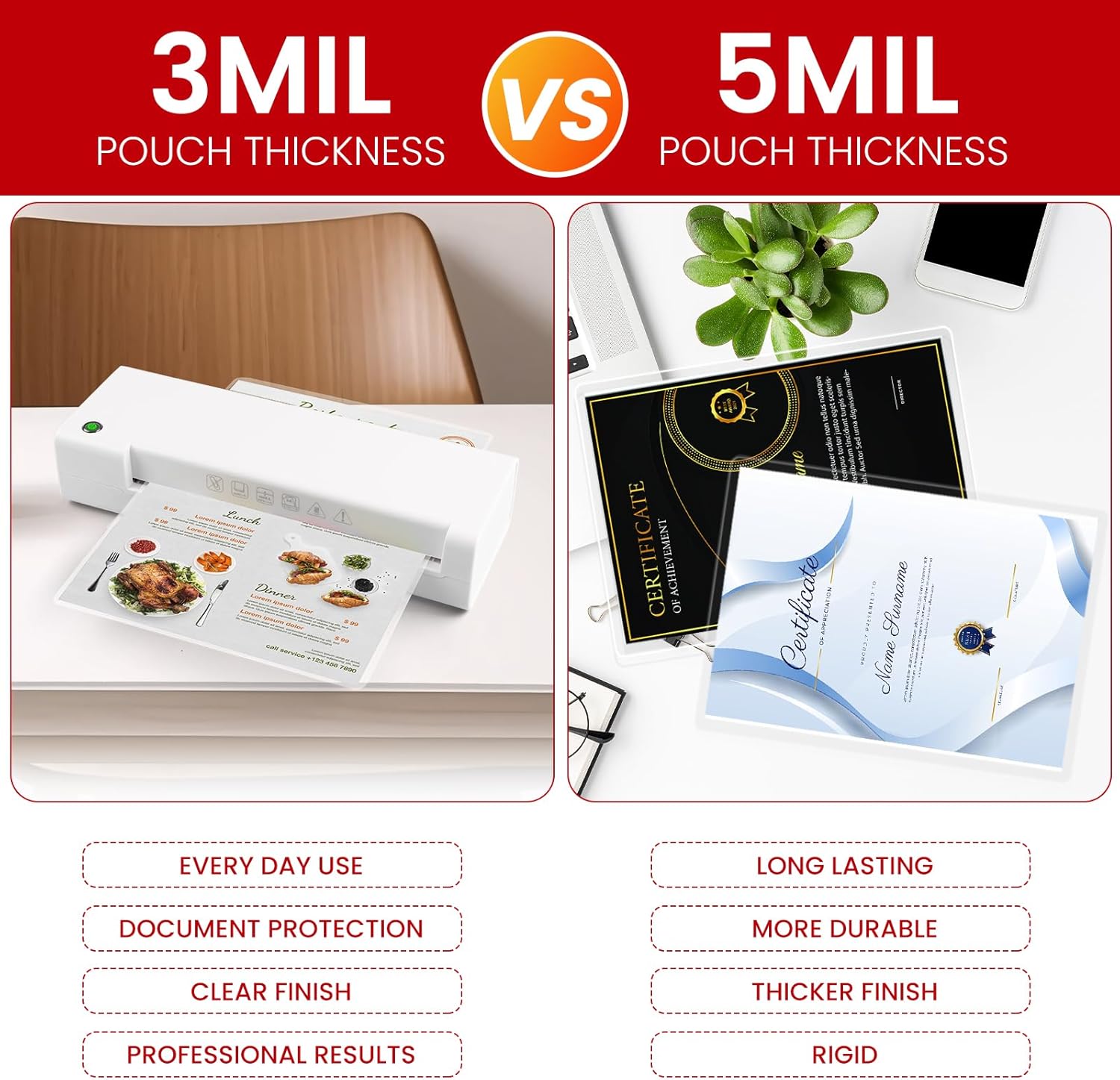 - Application:Perfect for protecting certificates,signs,photos,awards,calendars,kids artworks.It can seal and protect your documents it can be used in classroom, home and office.Compatible with all thermal laminator machine brands
