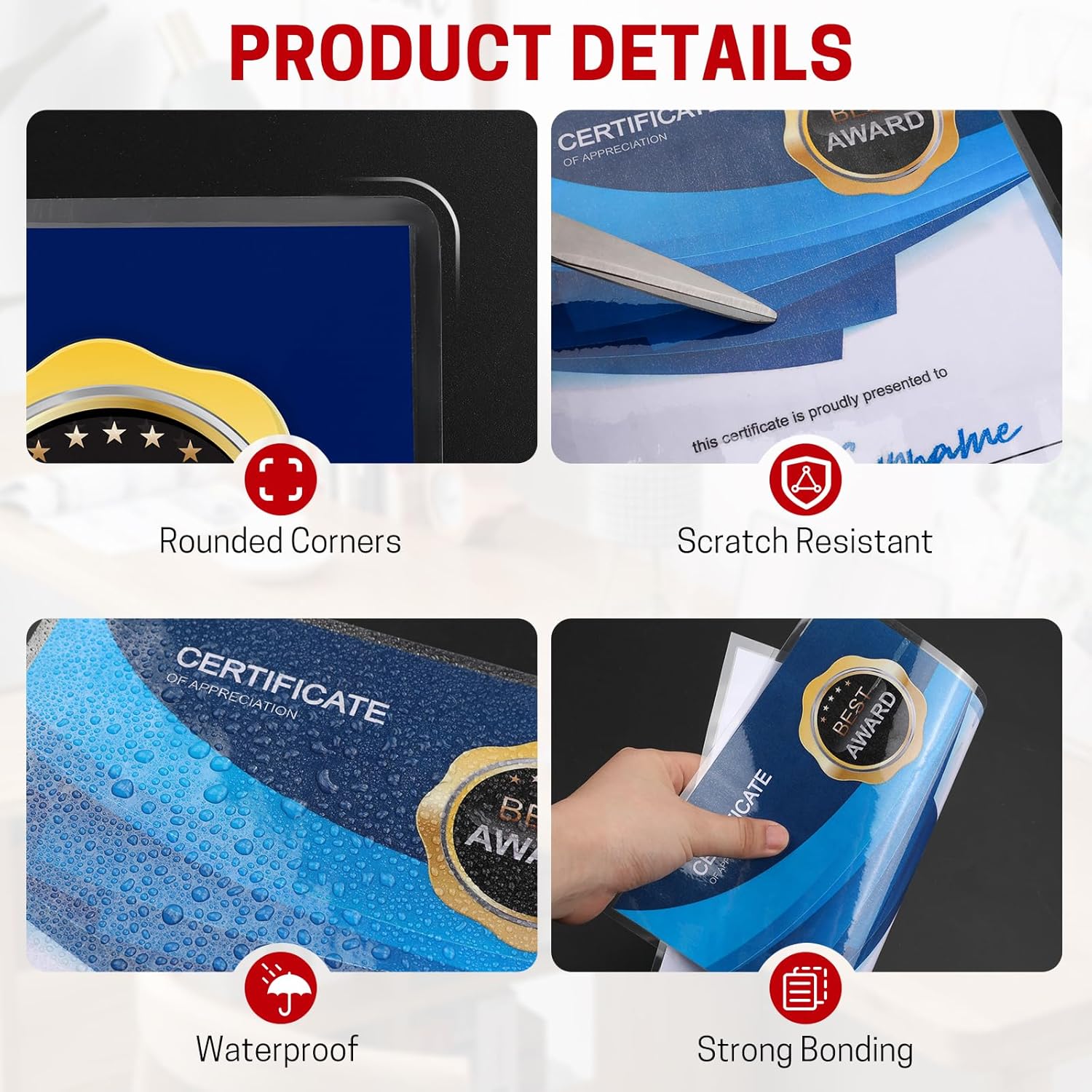 - Excellent Clarity:The laminating sheets only use high-quality adhesive for best transparency to ensure that the photos and documents are clearly visible let important information show through! Round corner design, safe to use