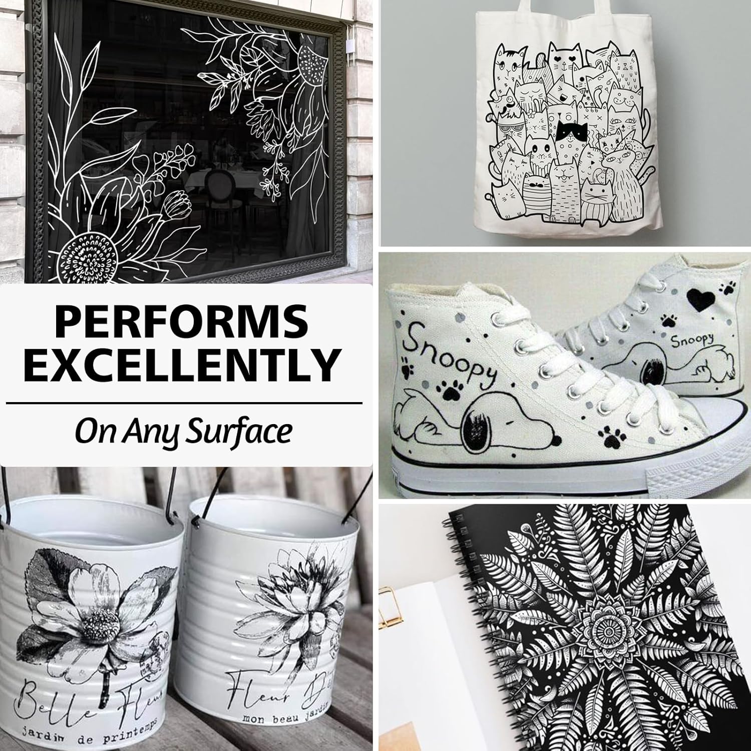 - EXCELLENT OPACITY & QUICK-DRYING - The highly pigmented, water-based formula provides vibrant, opaque coverage that sticks brilliantly even on dark materials. The quick-drying ink prevents smudging and bleeding, ensuring your artwork remains crisp, clean, and professional-looking.