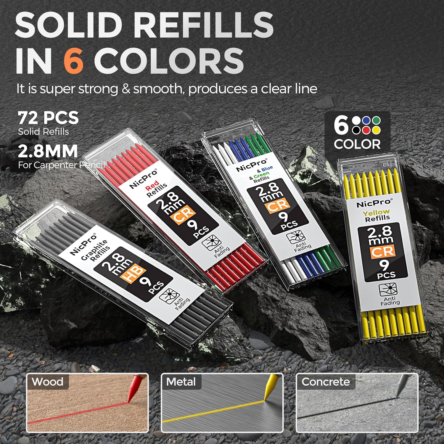 - Marks on Various Surfaces: This work pencil is matched with a 2.8 mm thick color lead, It can mark on a variety of surfaces, including rough, smooth, dry, and wet materials like wood, metal, plastic, and concrete. Making it a standout choice for woodworkers, electricians, and other tradespeople
