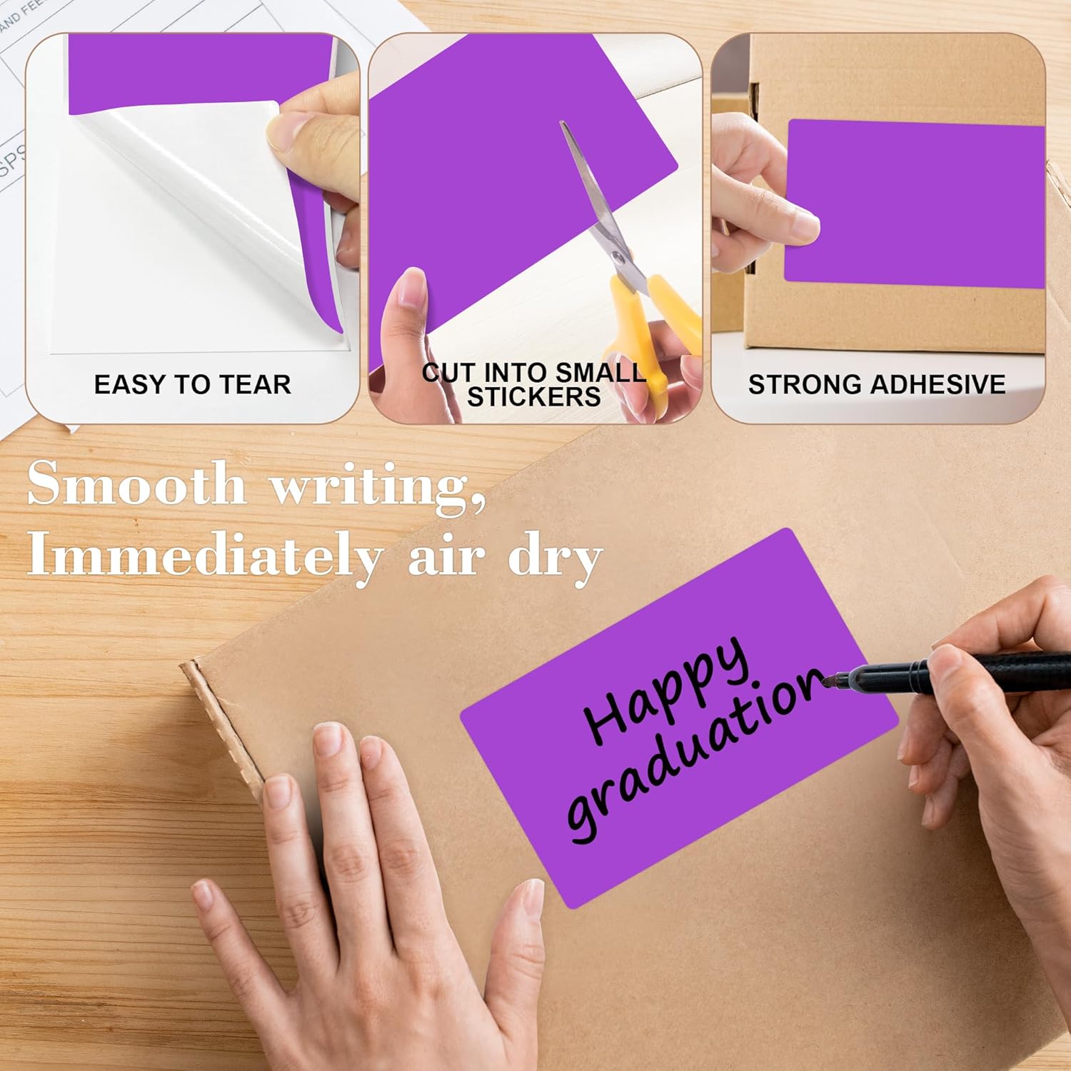 - These square label stickers permanent adhesive label are easy to use, tear off the dotted line of the color box and pull the rectangle stickers from box, what you need is just peel it and then stick it!