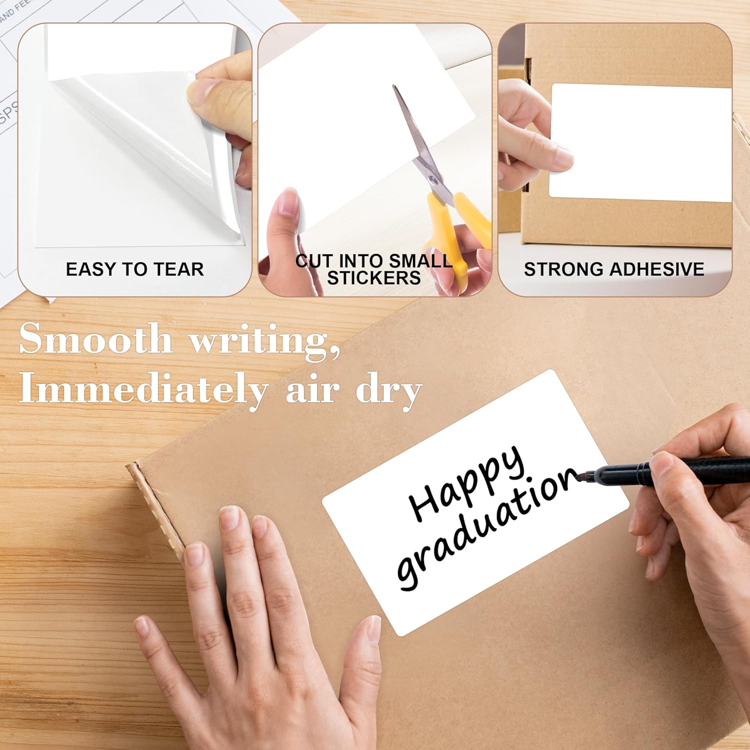 - These square label stickers permanent adhesive label are easy to use, tear off the dotted line of the color box and pull the rectangle stickers from box, what you need is just peel it and then stick it!