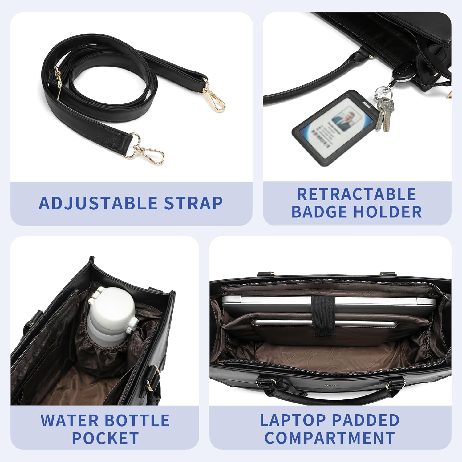• 【Versatile Laptop Bags for Women】This womens computer tote has length adjustable shoulder strap and handle, is suitable for different body type.The leather bags for women is ideal for daily use at shopping, office, college, business trip, school,travel etc.Perfect gift choice for anniversary, birthday, Mother's Day, Valentine's Day and Christmas