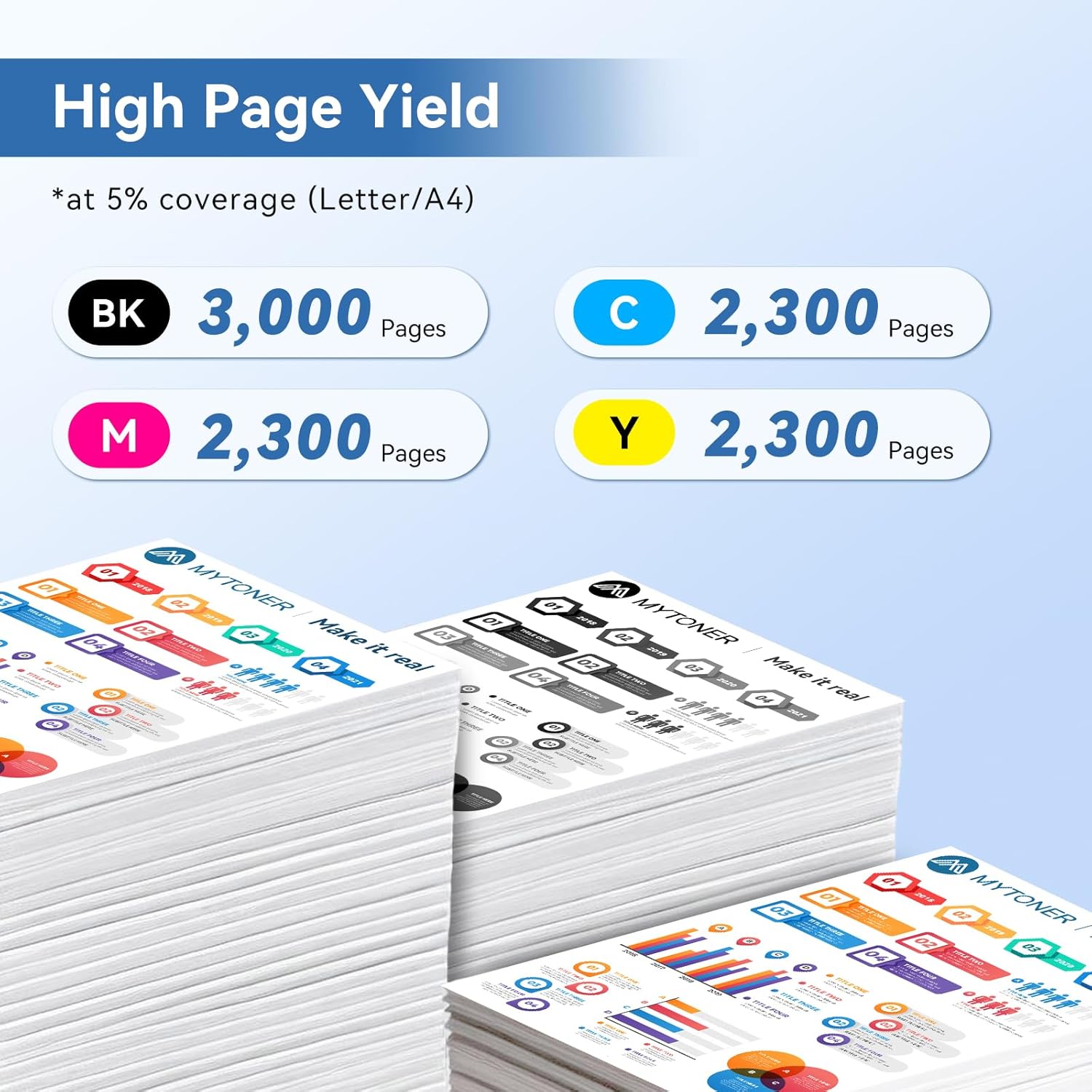 - Page Yield: Up to 3,000 pages for TN229XL black toner cartridge-TN229XLBK, Up to 2,300 pages for each TN229XL color toner cartridges-TN229XLC/M/Y (Letter/A4, at 5% coverage)