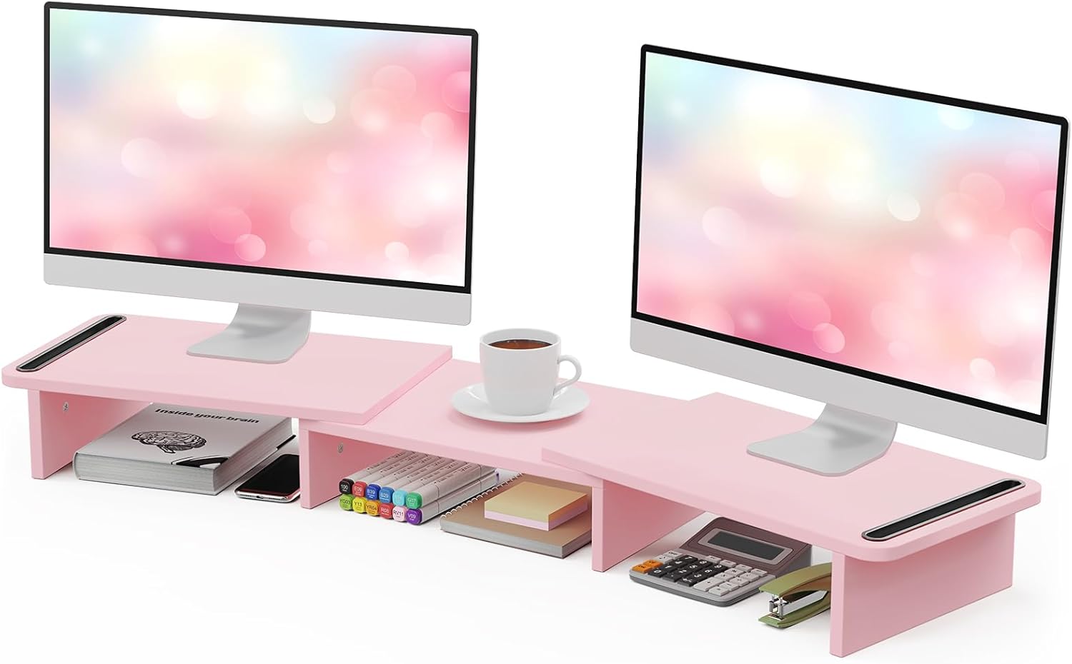 Zimilar Dual Monitor Stand Riser, Monitor Stand with Adjustable Length and Angle, Wood Monitor Stand for Desk, Monitor Riser for 2 Monitors with Storage Space