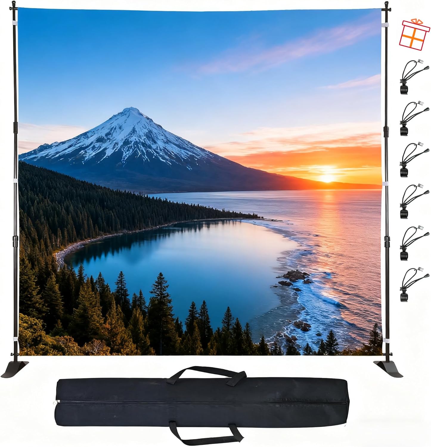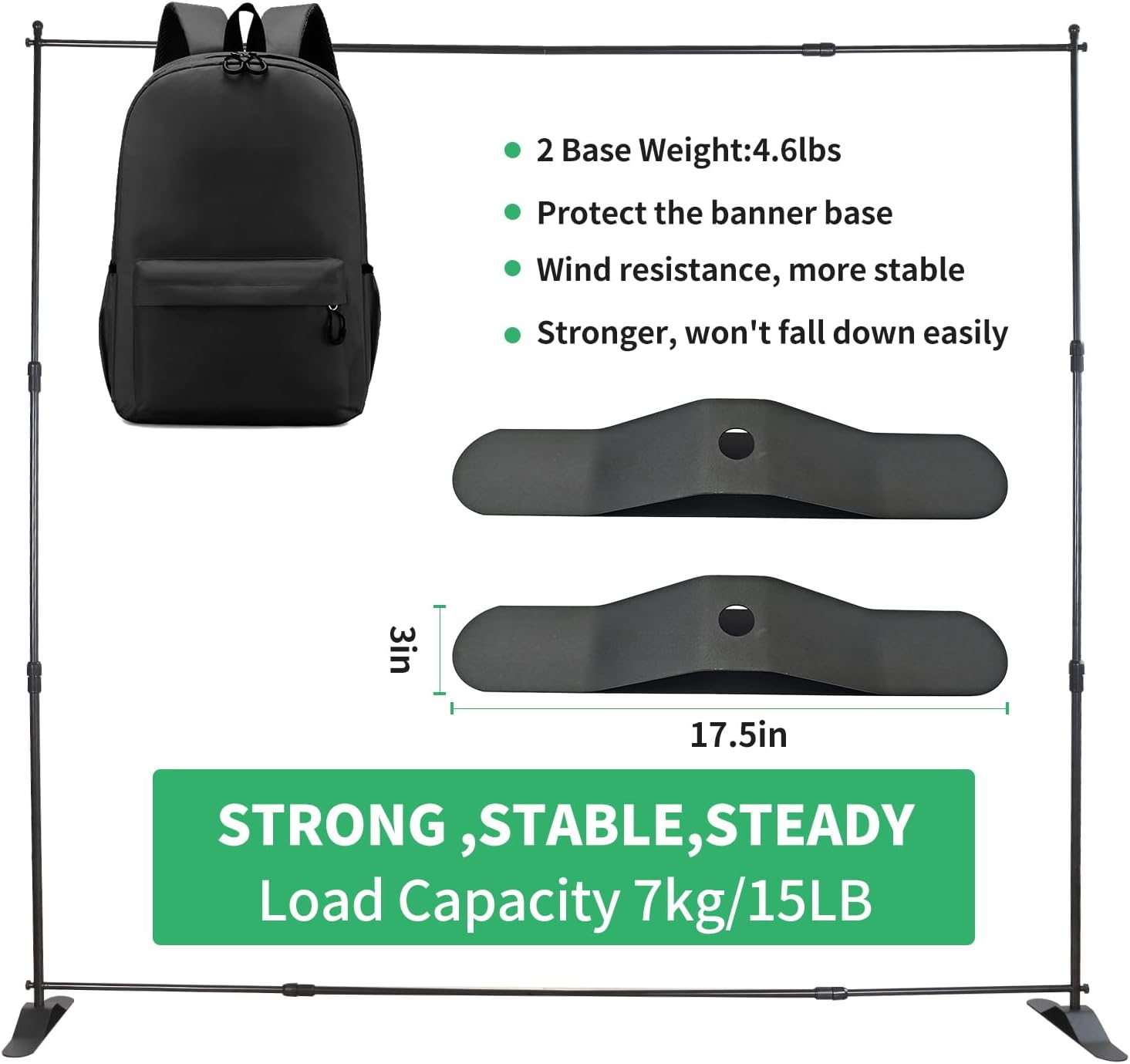 - 【Robust Metal Bracket】:This 10x8 banner stand backdrop is crafted from metal rods.The metal material not only ensures remarkable durability but also offers excellent solidity, making it suitable for long term use. Its standing heavy duty feets provide rock solid support, with a maximum load bearing capacity of 15 LBS (7 kg), and it can be well matched with various types of backgrounds