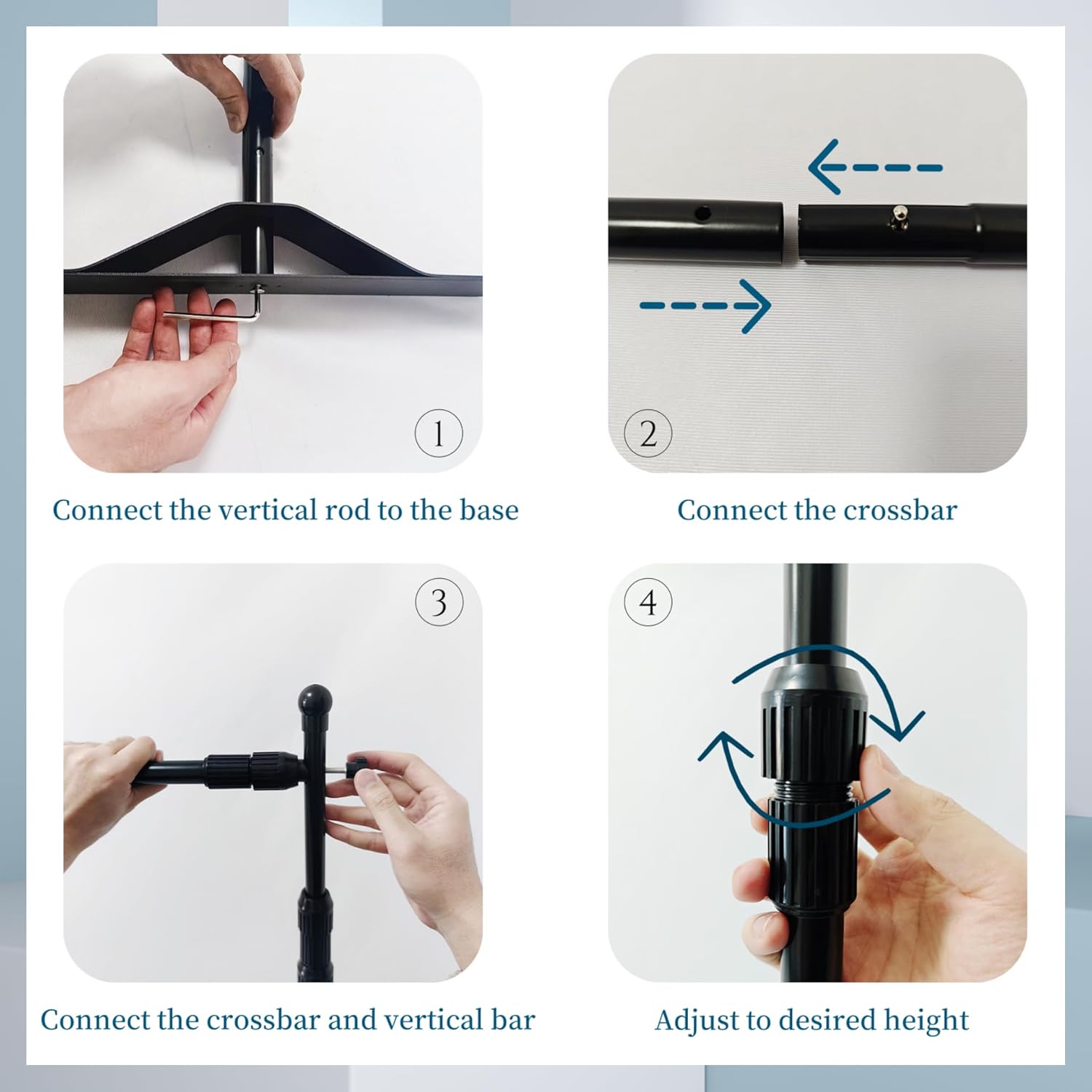 - 【Quick Assembly in Minutes】:Our background racks can be assembled and disassembled by a single person in just a few minutes.There is no need for professional installers or additional tools.All you need to do is install the base using the matching screws and wrenches, connect the rod segments, and then adjust the frame to the desired size