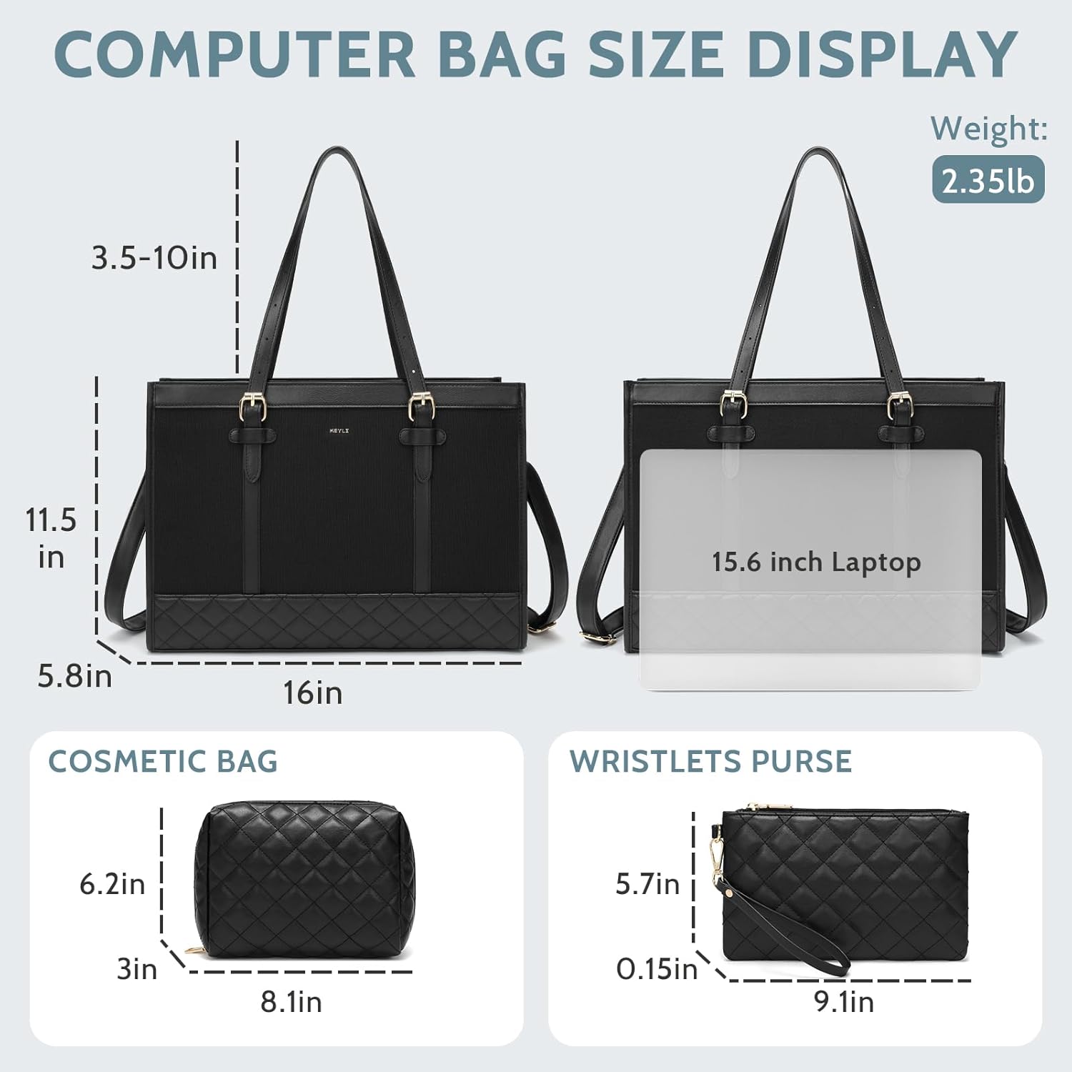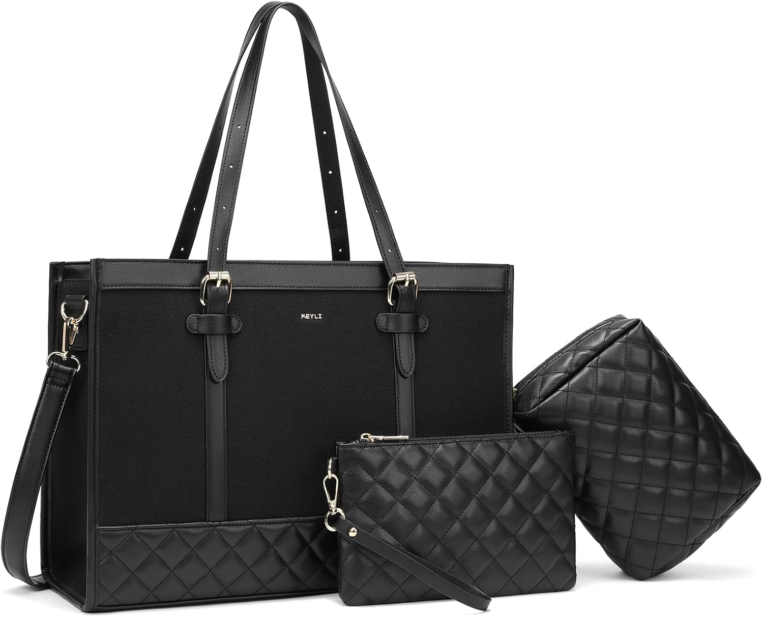 Keyli 3pcs Laptop Bag for Women,15.6 Inch Canvas Tote Bag Work Bags Large Business Computer Briefcase Shoulder Handbag Purse