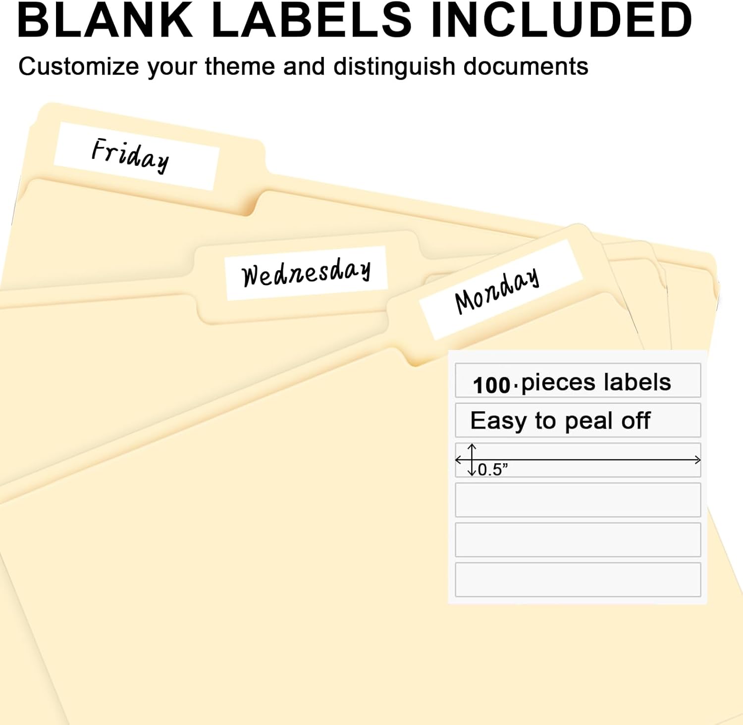 - PACKAGE INCLUDED: This bulk pack includes 100 letter size file folders (50 of each position) and 100 blank labels, idea for any home, office, or school project, providing you with plenty of storage space for all of your important documents