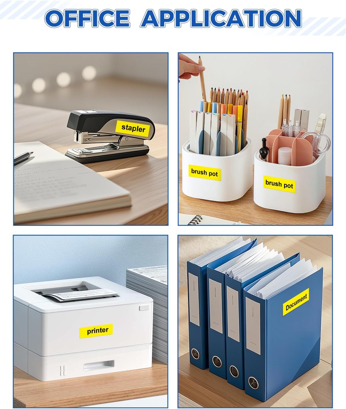- Features: Our 24mm 0.94" black on yellow label maker tape split design makes the label tape easy to peel and apply, with strong adhesion/waterproof/temperature/oil/abrasion/fading, and reliably sticking to various surfaces