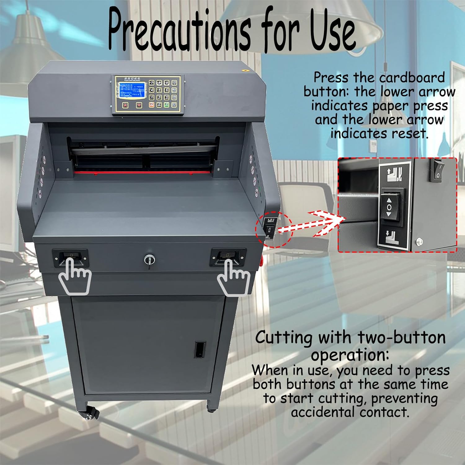 - Widely Application: It is suitable for small and medium-sized printing enterprises, photocopying, office and cutting paper, books, pictures, document archives and other non-metallic materials. Safe and reliable, it is your ideal cutting product