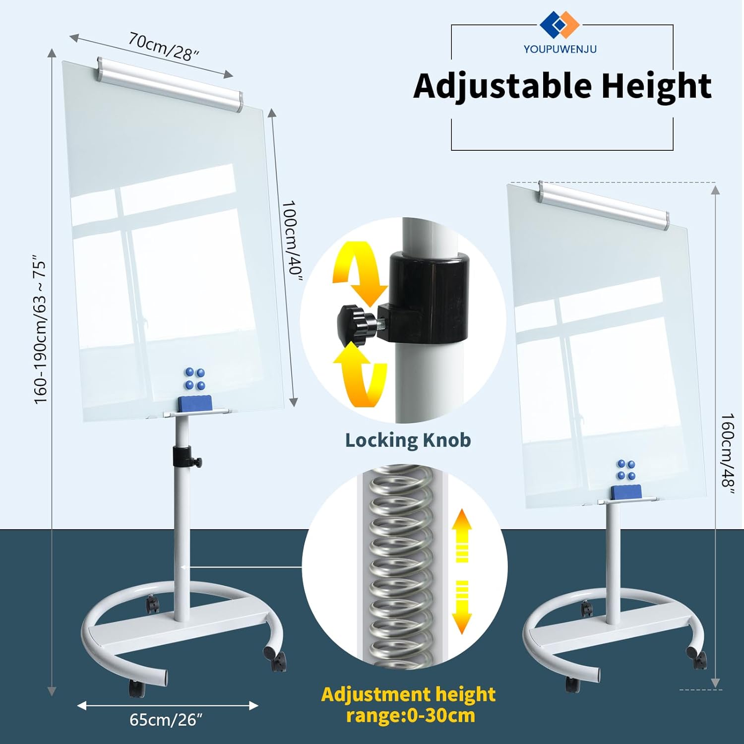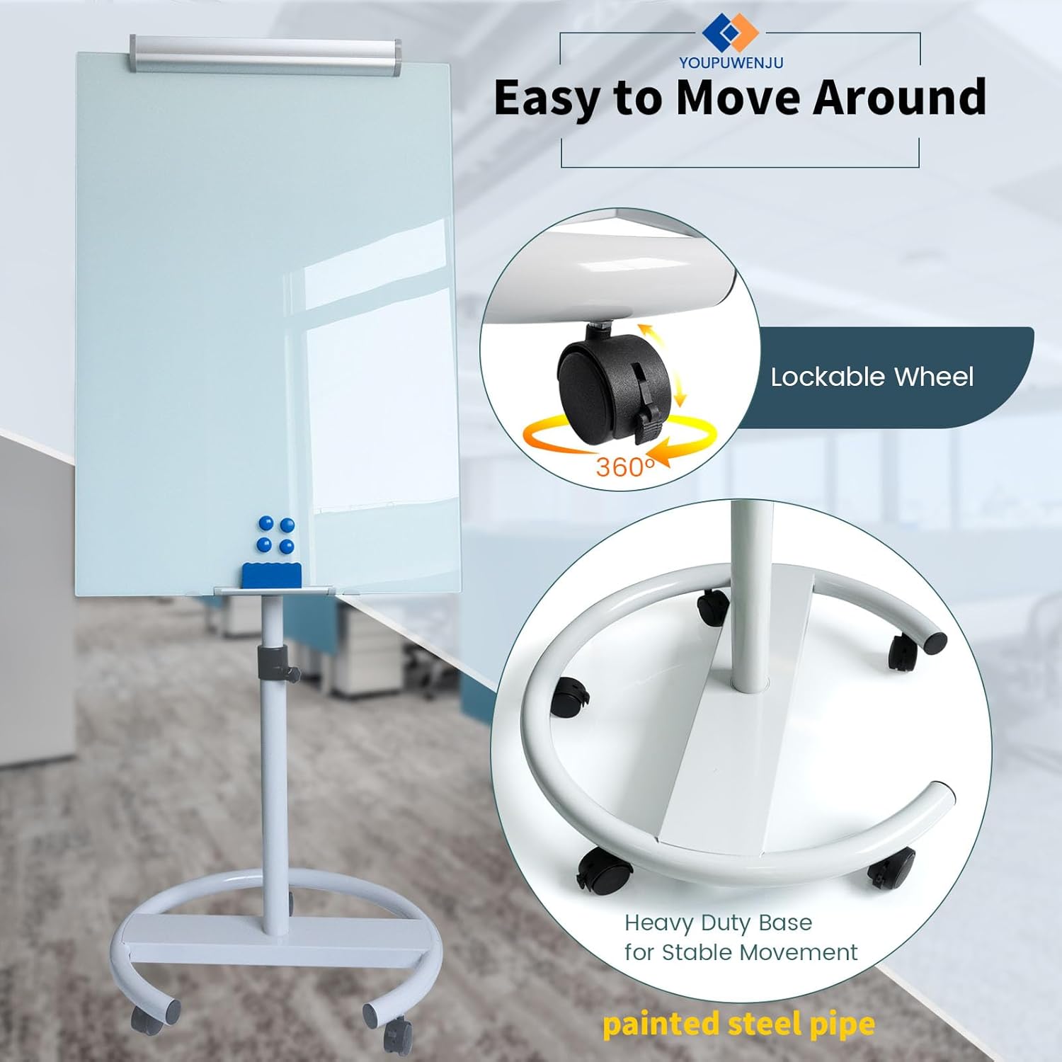 - Easy to Move & Lock: Mobile Whiteboard feature 5 durable 360 degrees caster wheels which have brakes, allow you to easily move this whiteboard and lock it in place, makes your presentation, teaching or training more efficient and orderly.