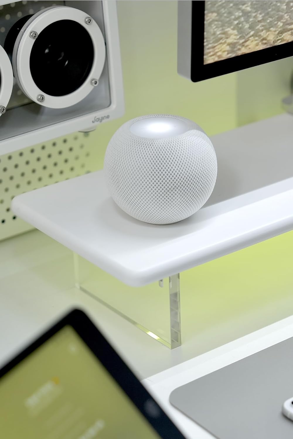 - Sleek Bamboo + Acrylic Design: The mix of natural bamboo and clear acrylic creates a clean, floating look that adds elegance and visual lightness to any workspace.