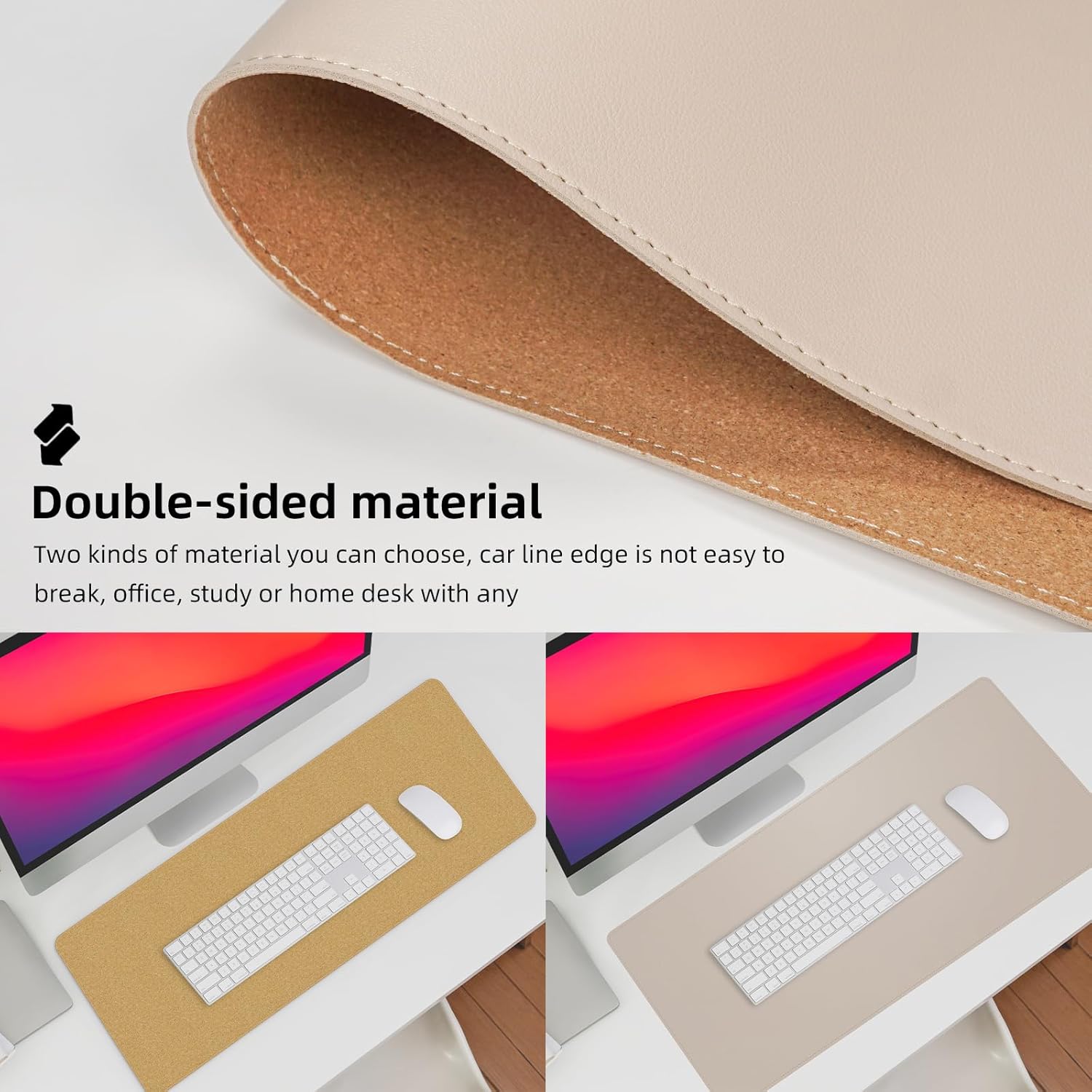 Leather Desk pad Protector, Large Desk mat with Natural Cork & PU Leather,Mouse pad,Non-Slip Office Desk Mat,Waterproof Desk Writing Pad for Office and Home (35in*17in,Beige)