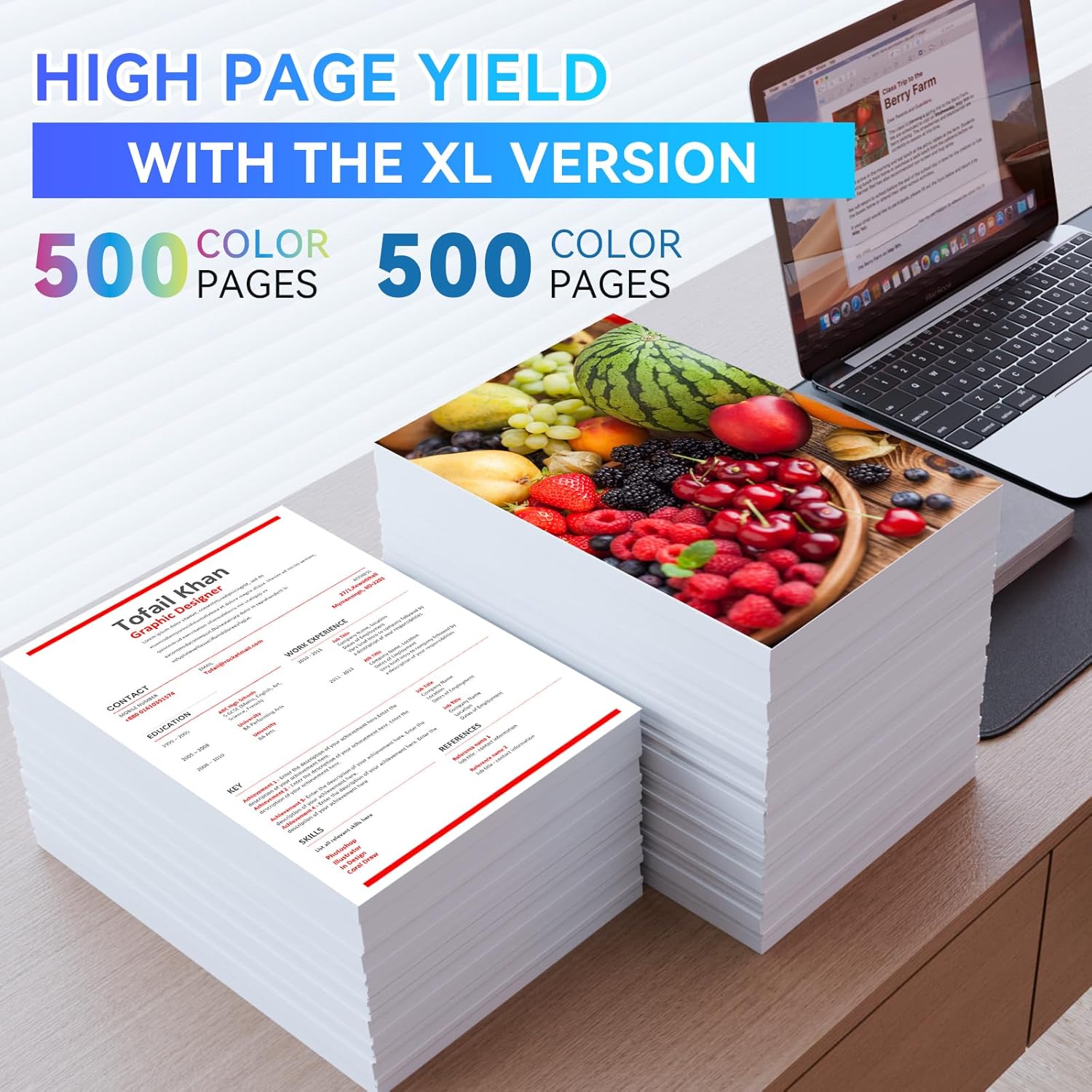 - High Yield: High yields up to 500 pages per ink cartridge (5% coveragae*A4 paper size)