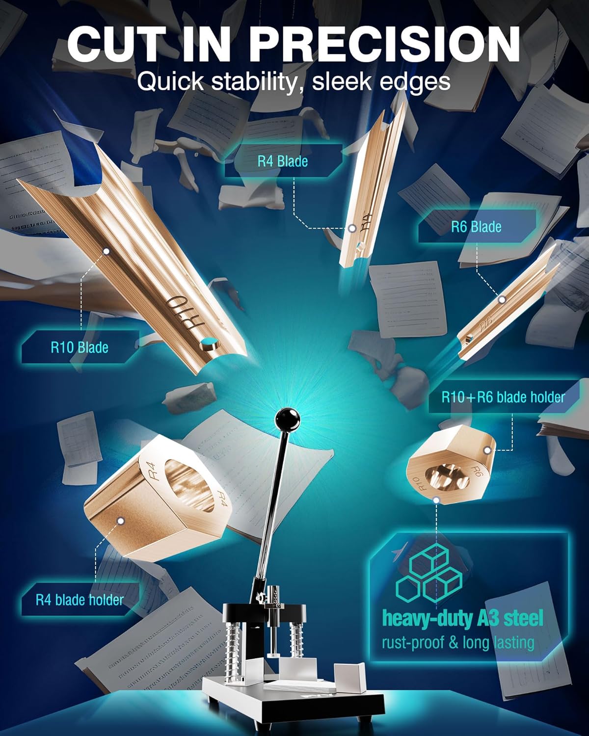 - 30MM 300 SHEETS MAX CUTTING: Adjustable cutting height up to 30mm/1.2"", capable of cutting about 300 sheets at once. The A3 tool steel blade is sharp and durable, enhancing speed and efficiency.