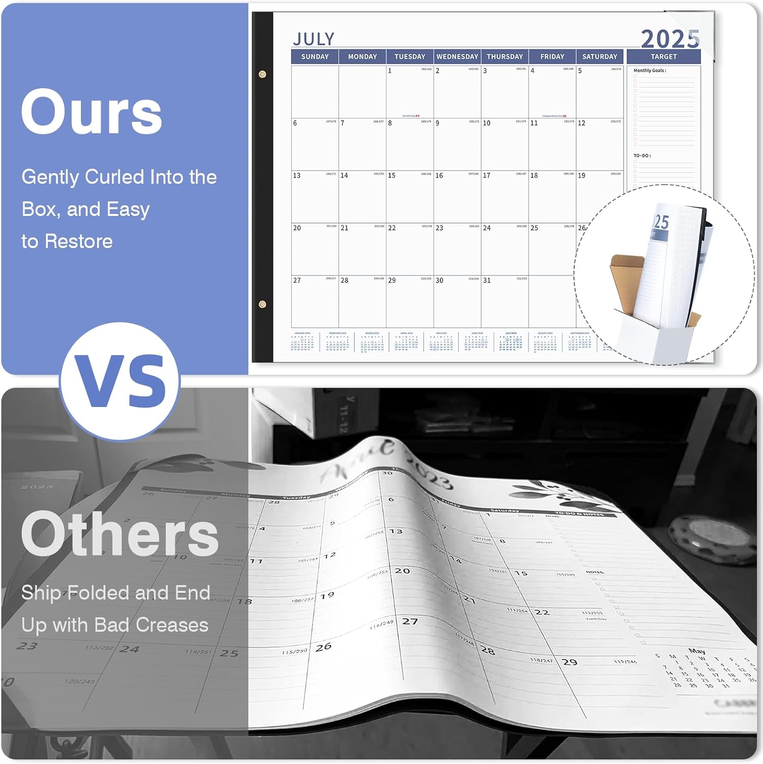 - 【Premium Thick Paper】With a weight of 0.264lb per sheet, the 2025 calendar is designed using premium thick paper, ensuring a high-quality writing experience. It is resistant to ink seepage, resulting in clean and crisp writing. To safeguard the calendar from dust and liquids, it comes with a transparent PVC cover. Two corner protectors are included to keep the pages flat. Plus, the cutting line allows for effortless tearing of each month's page. This desk calendar is perfect to long-term use.