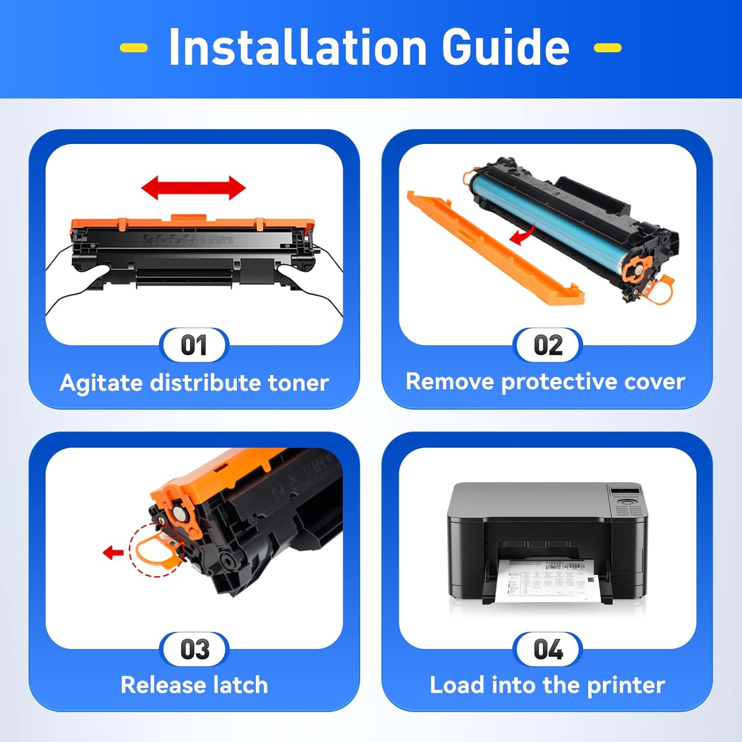 - The latest chip version: The JCTONER toner cartridges are equipped with the latest version of built-in chips, ensuring perfect compatibility between each toner cartridge and the printer. This enables you to print efficiently while maintaining stability and reliability, making installation convenient without the need for manual adjustments. All JCTONER toner cartridges have undergone strict quality testing and have obtained ISO9001 certification. High-quality toner cartridges can meet the demand for high printing volume. The fine toner ensures clear and stain-free printing results and extends the lifespan of the printer. You can purchase with confidence.